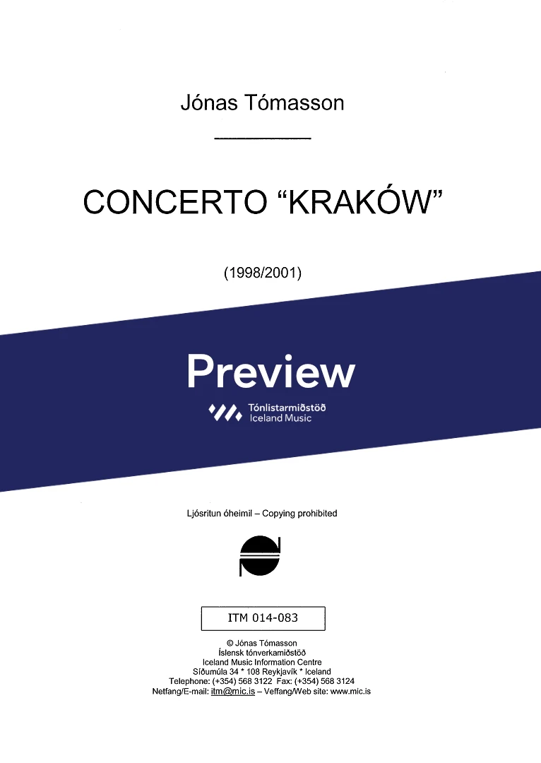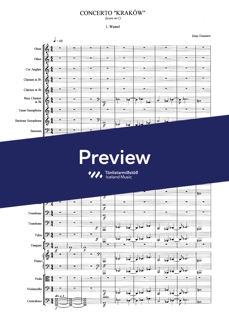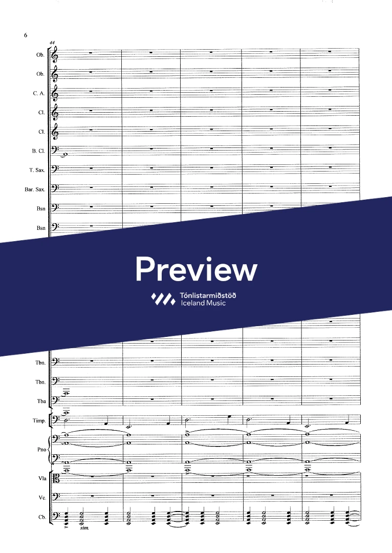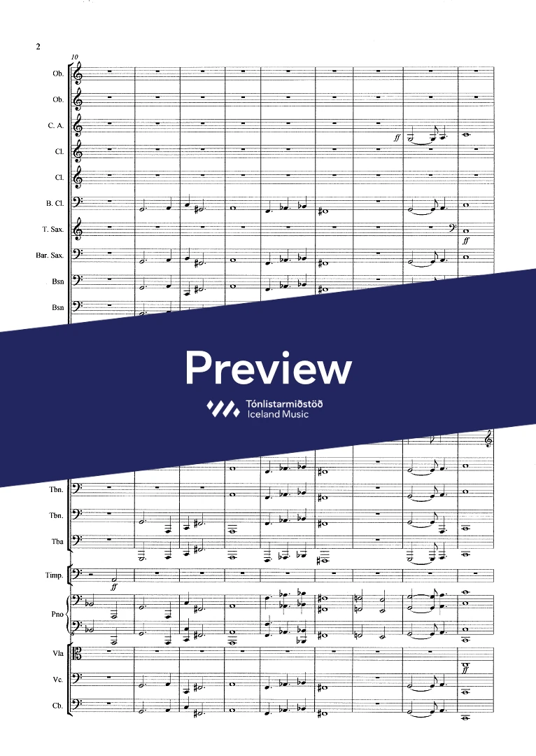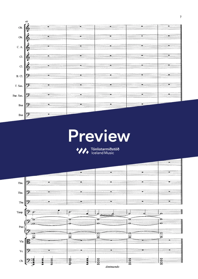 Instrumentation 2,2(c.ang)3(bcl.) ten. sax. bar.sax. 3(cbn) - 4,0,2,1 - tmp. - pno solo - str. (no violins)