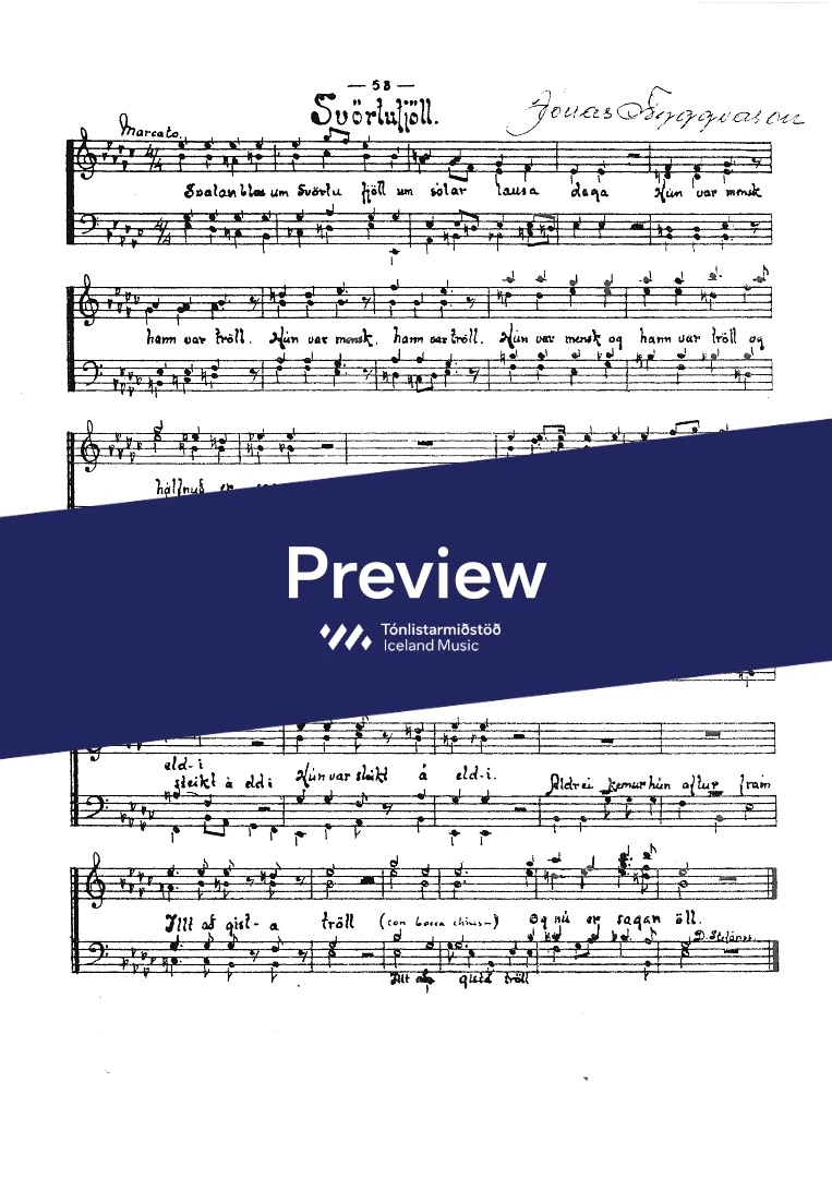 Text sampleSvalan blæs um svörtu fjöll