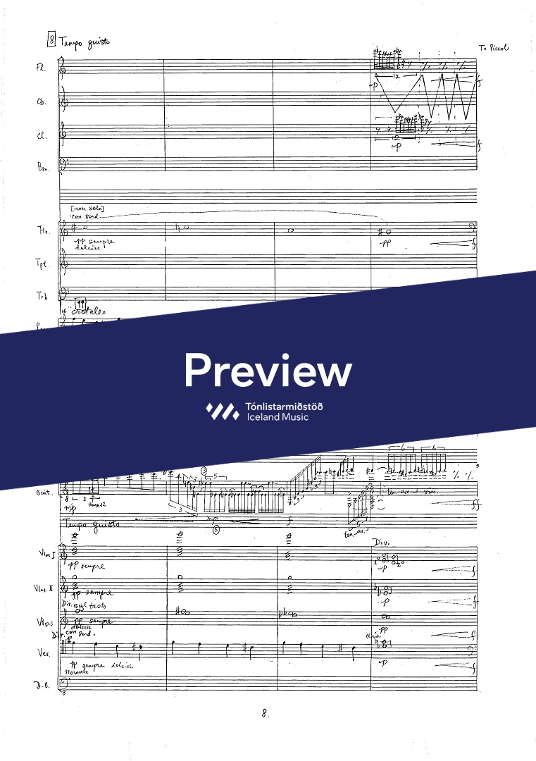 1(Pic).1.1(BCl).1-1.1.1.0 - perc. - pno/cel. - guitar solo - str.