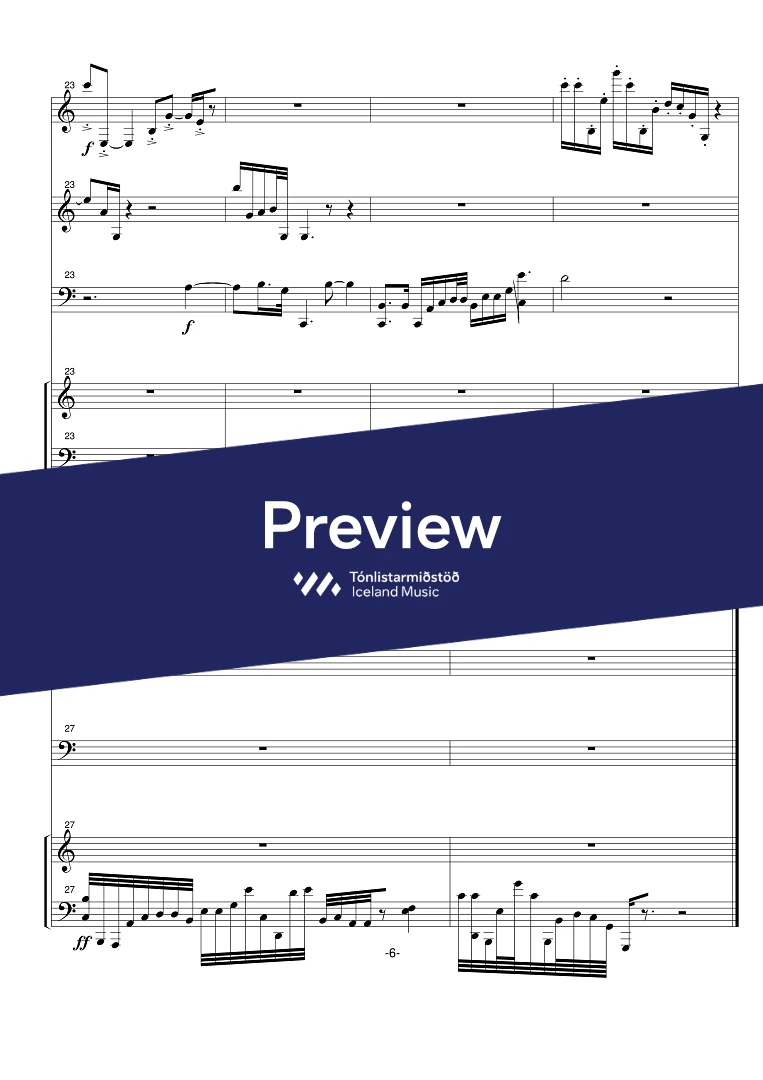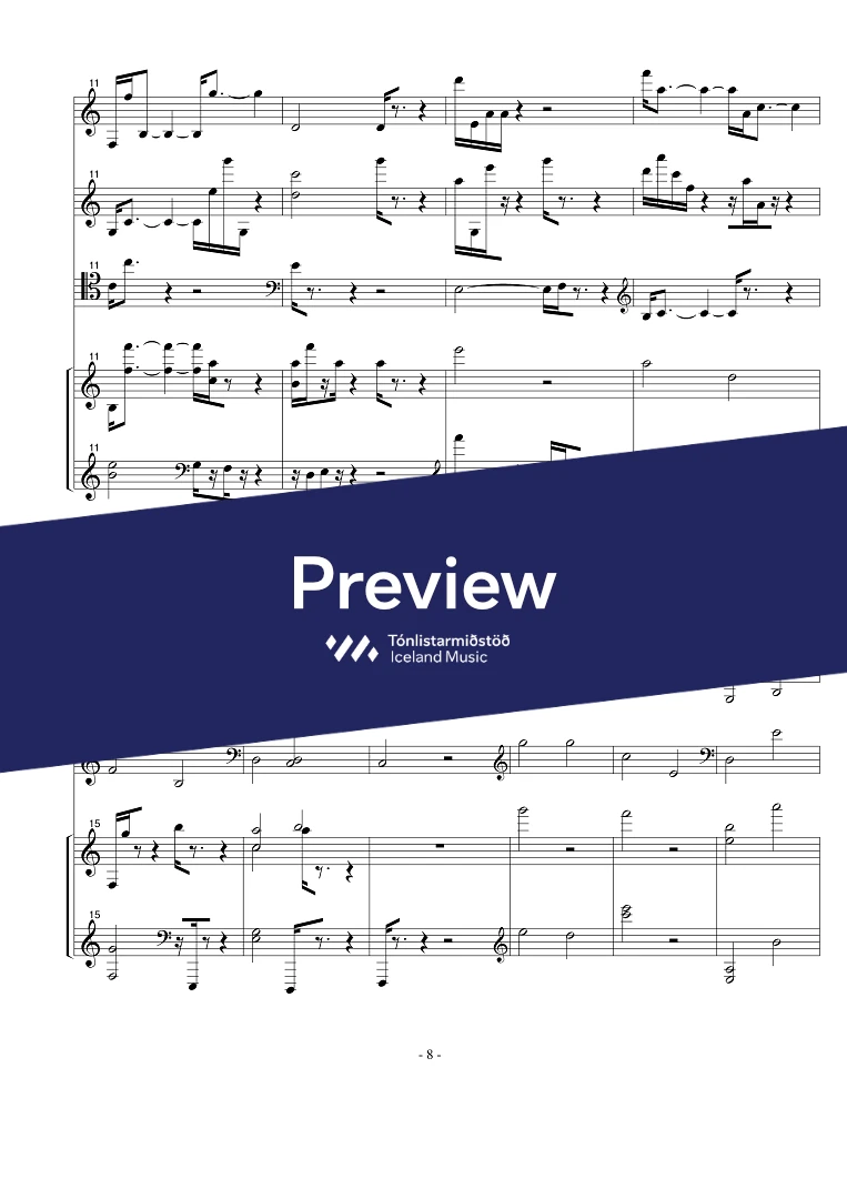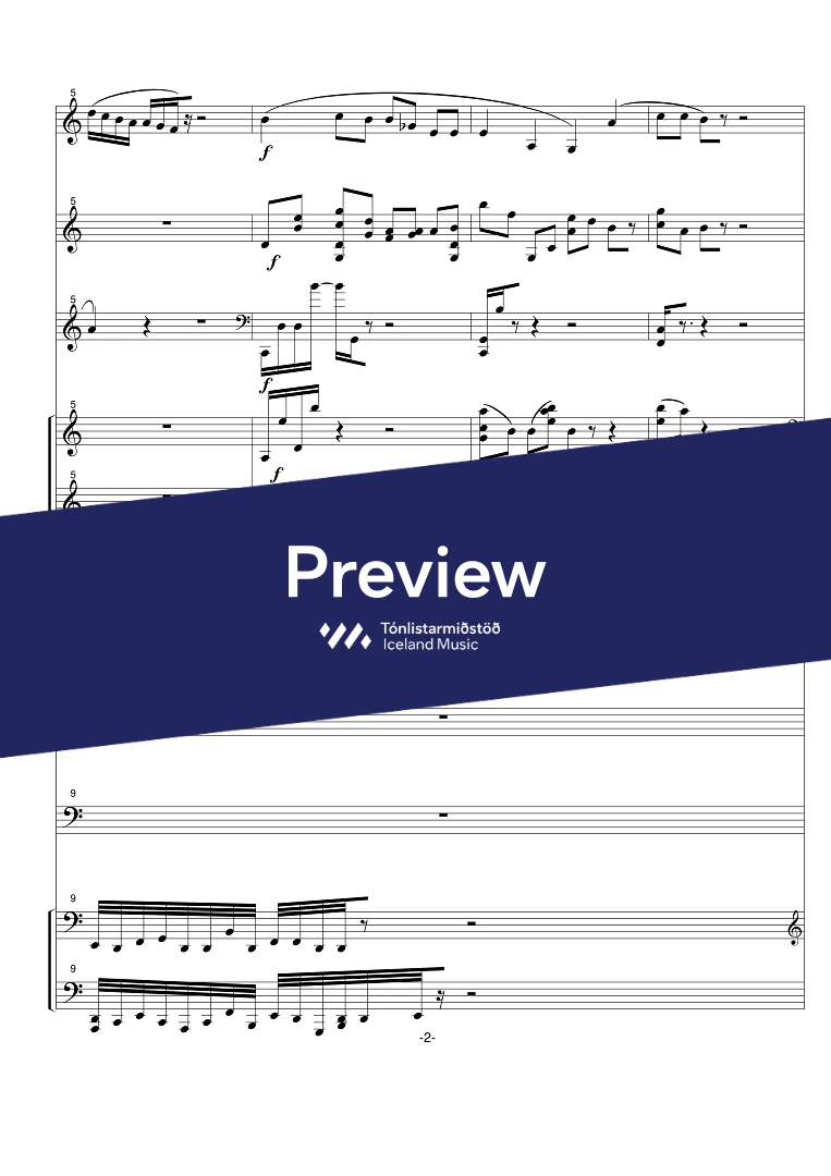 3 sopranos, 2 mezzo sopranos, 2 altos, string quintet & percussion