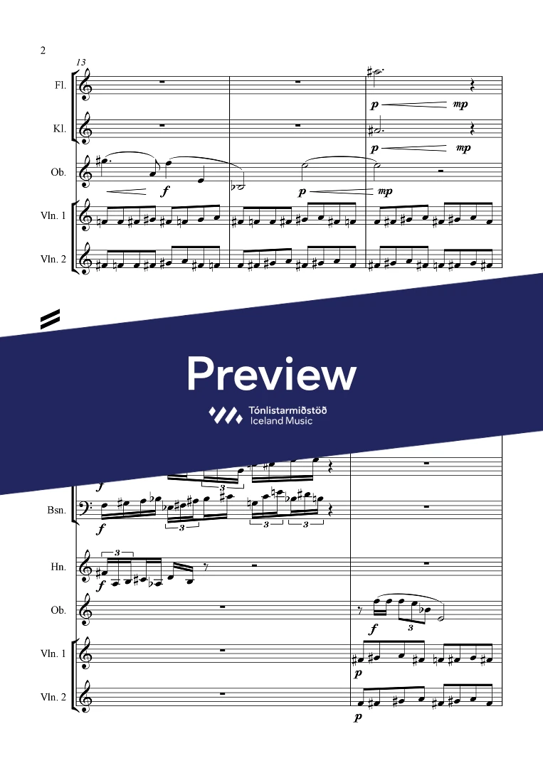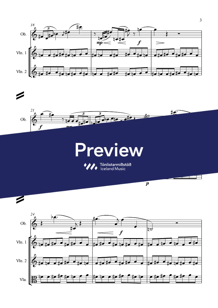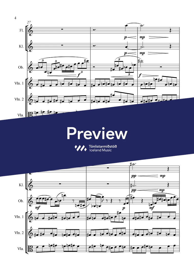 Instrumentation 1,1,1,1 - 1,0,0,0 - perc. - ob. solo - str.