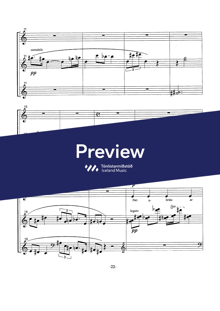 3 sopranos, 2 mezzo sopranos, 2 altos, string quintet & percussion