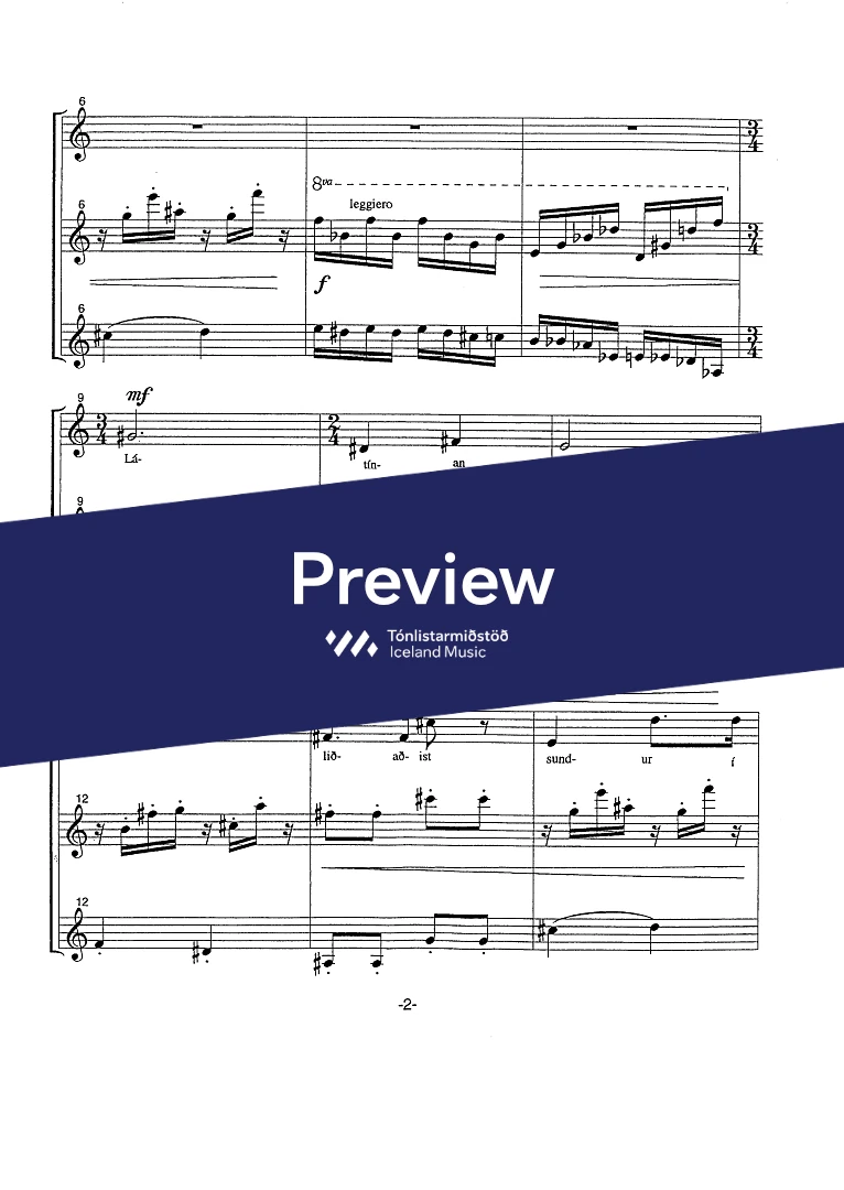 3 sopranos, 2 mezzo sopranos, 2 altos, string quintet & percussion