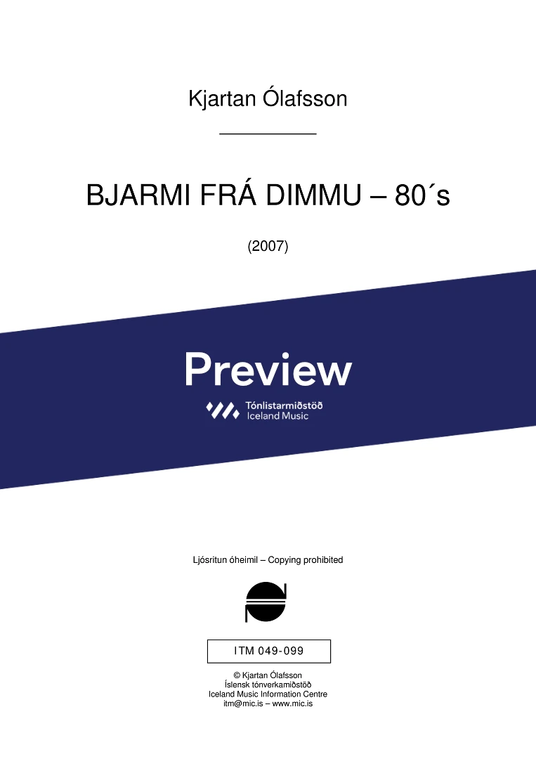 2(picc.),0,4(Bcl, Eb-kl.,)0 - 0,1,0,0, - slv.(2) -pno.(2), guit. - vln.(2),vla., Db.
