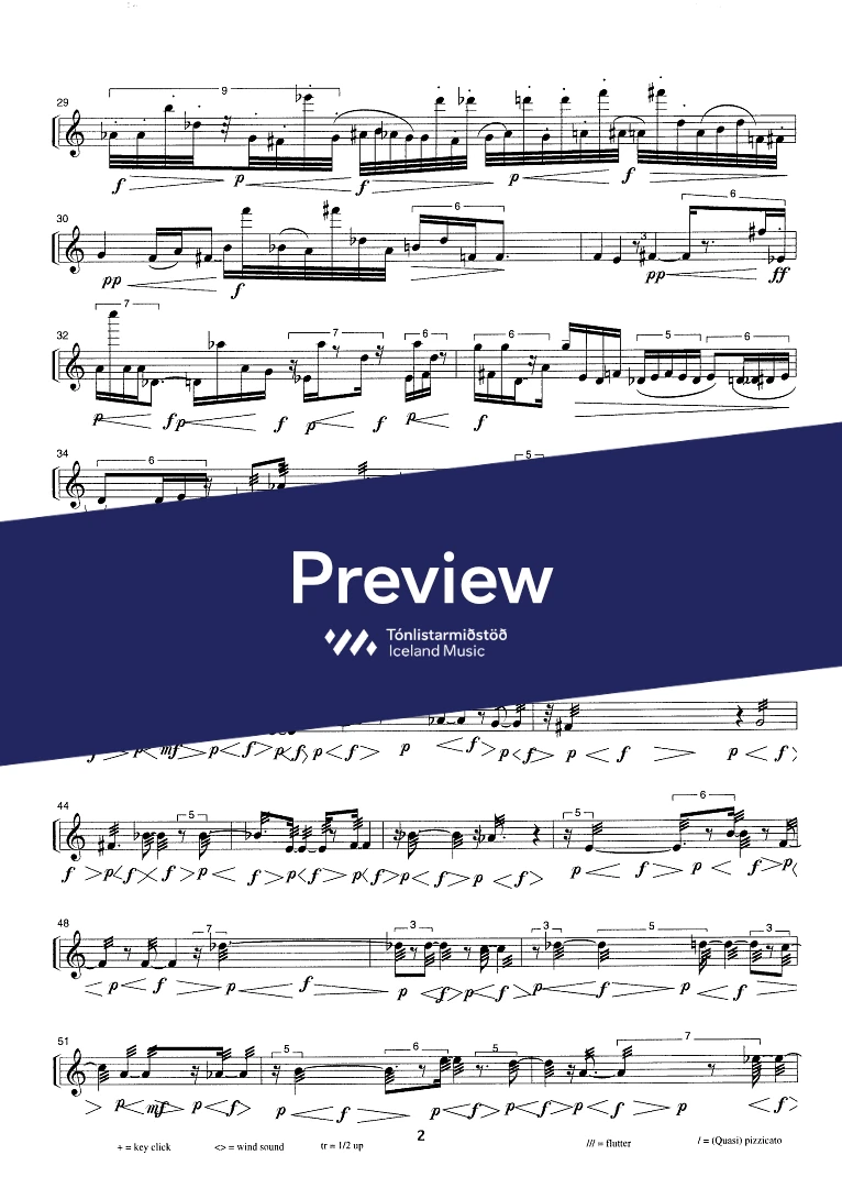 2(picc.),0,4(Bcl, Eb-kl.,)0 - 0,1,0,0, - slv.(2) -pno.(2), guit. - vln.(2),vla., Db.