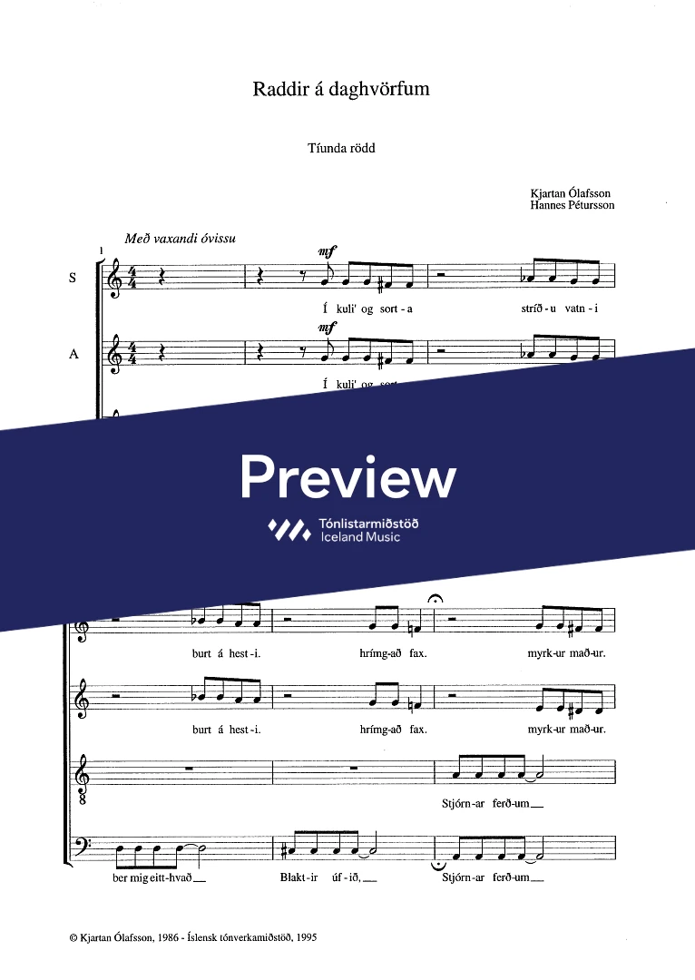 Also available as part of Raddir á daghvörfum, tilbrigði við tíu sönglög, 049-900