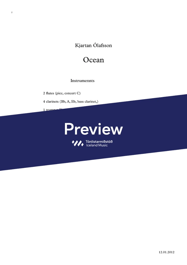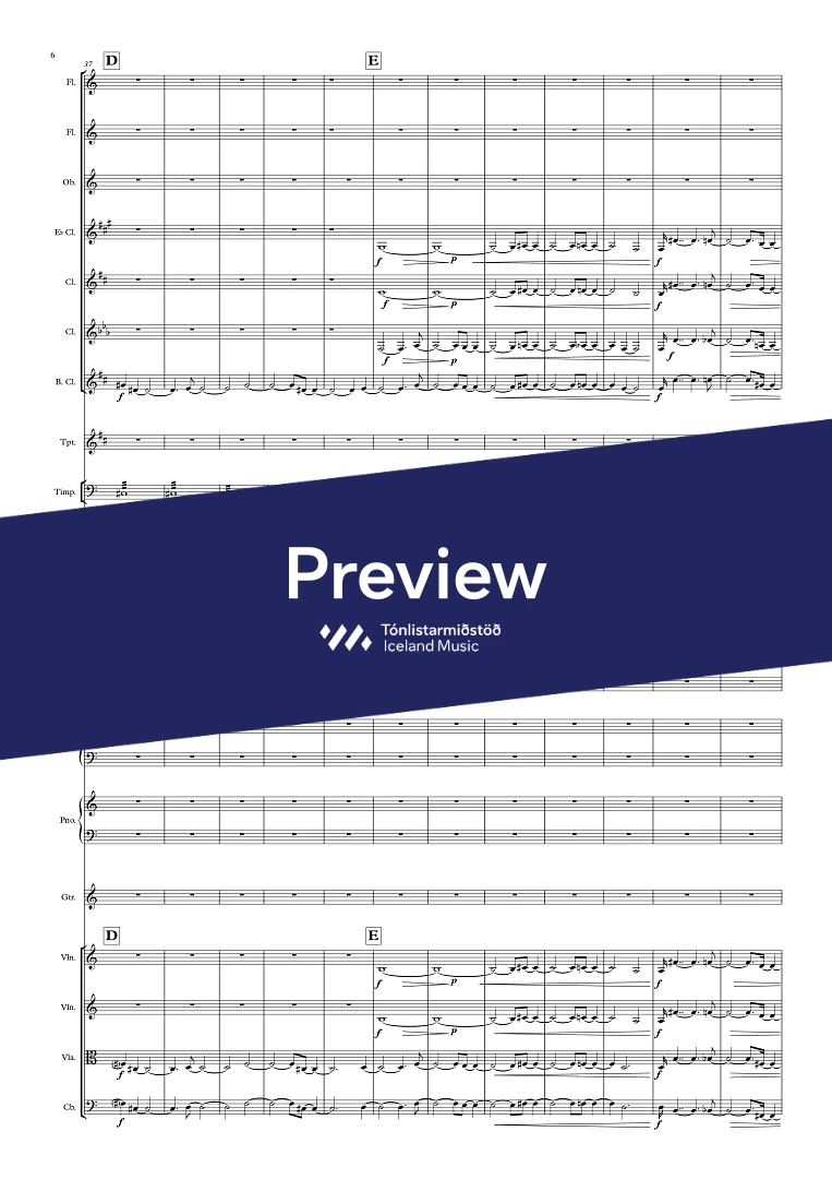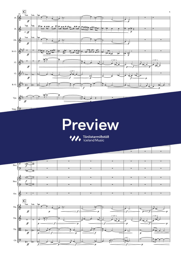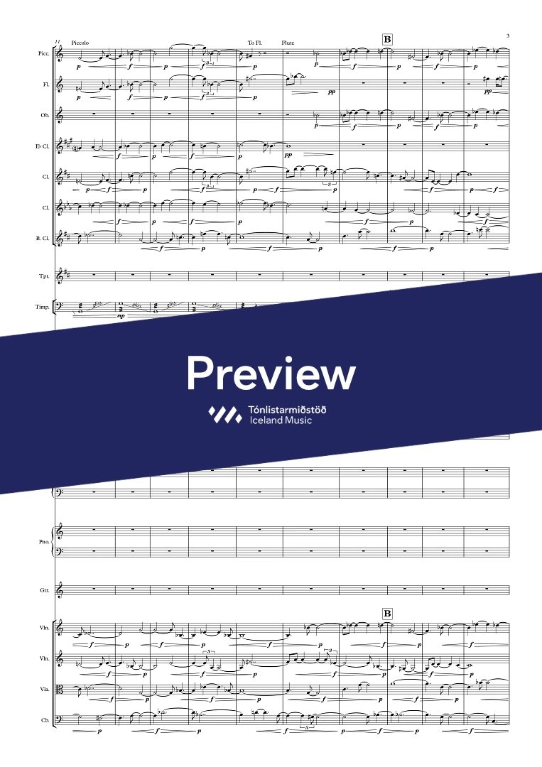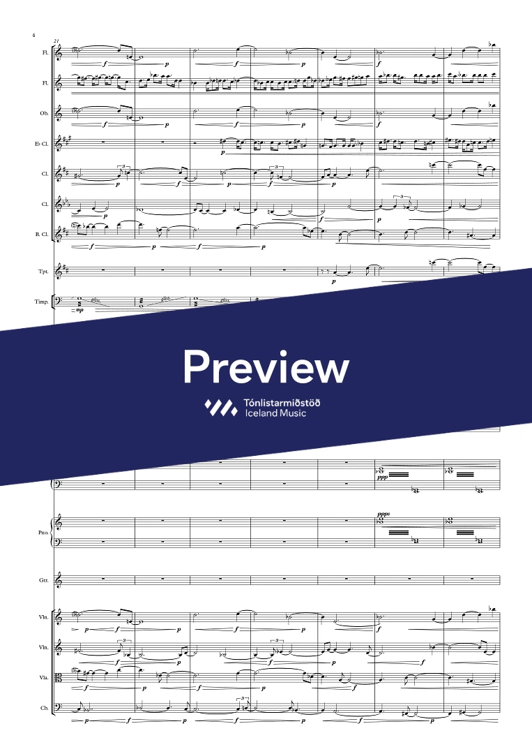 Instrumentation 2(picc.),0,4(Bcl, Eb-kl.,)0 - 0,1,0,0, - slv.(2) -pno.(2), guit. - vln.(2),vla., Db.