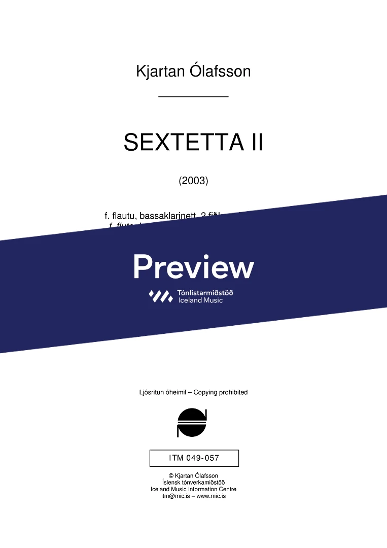 2(picc.),0,4(Bcl, Eb-kl.,)0 - 0,1,0,0, - slv.(2) -pno.(2), guit. - vln.(2),vla., Db.