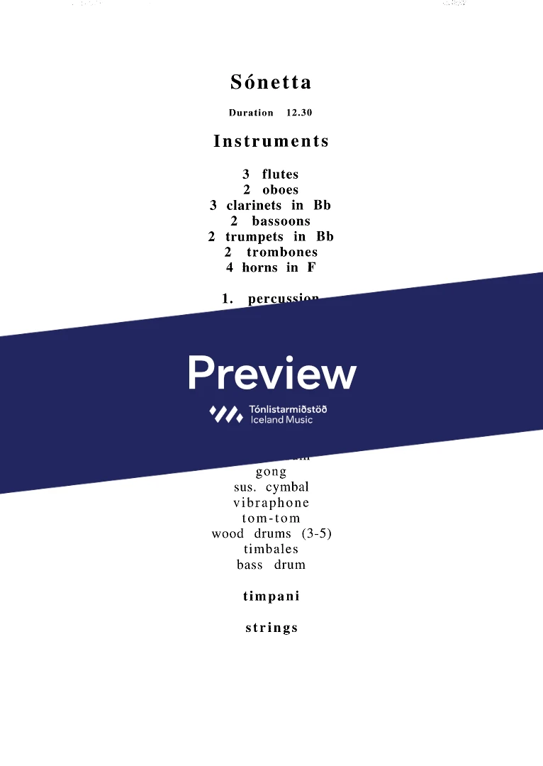 Instrumentation 3.2.3.2-4.2.2.0; Timp. 2.Perc. Strings