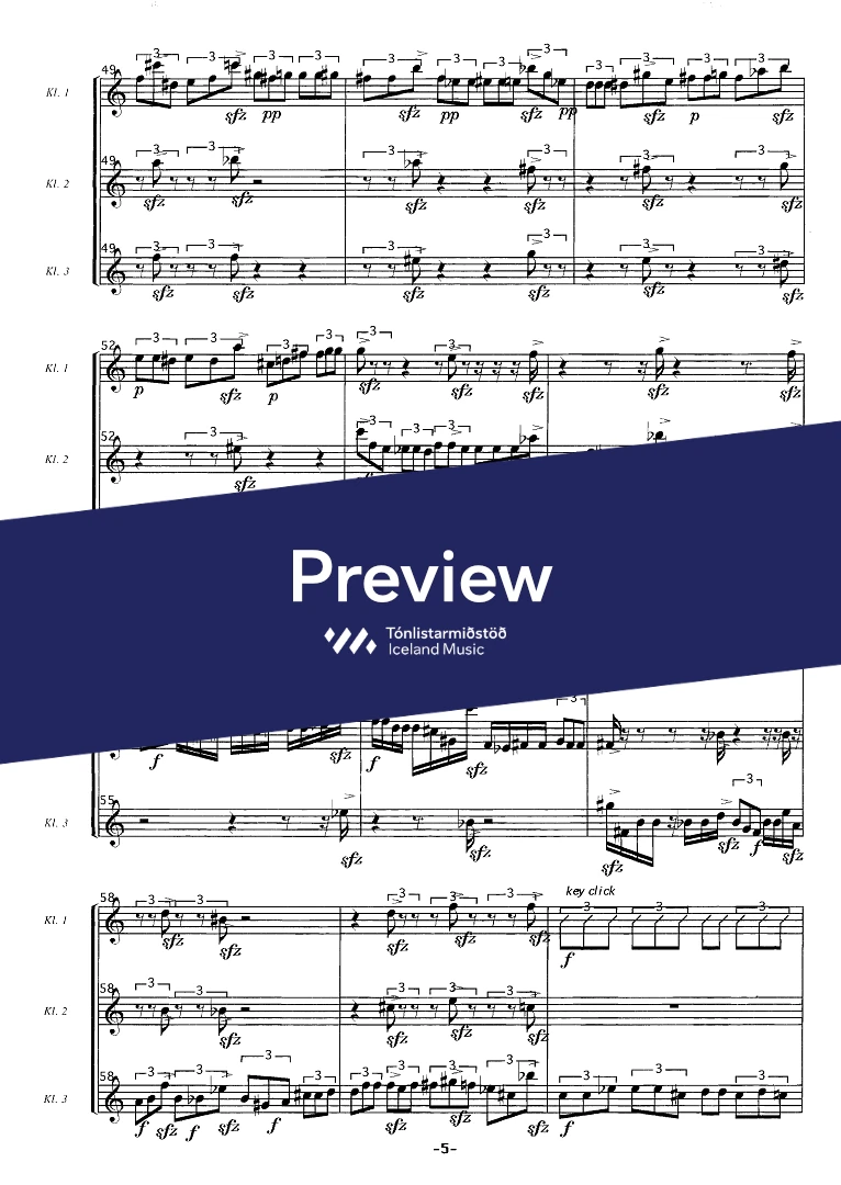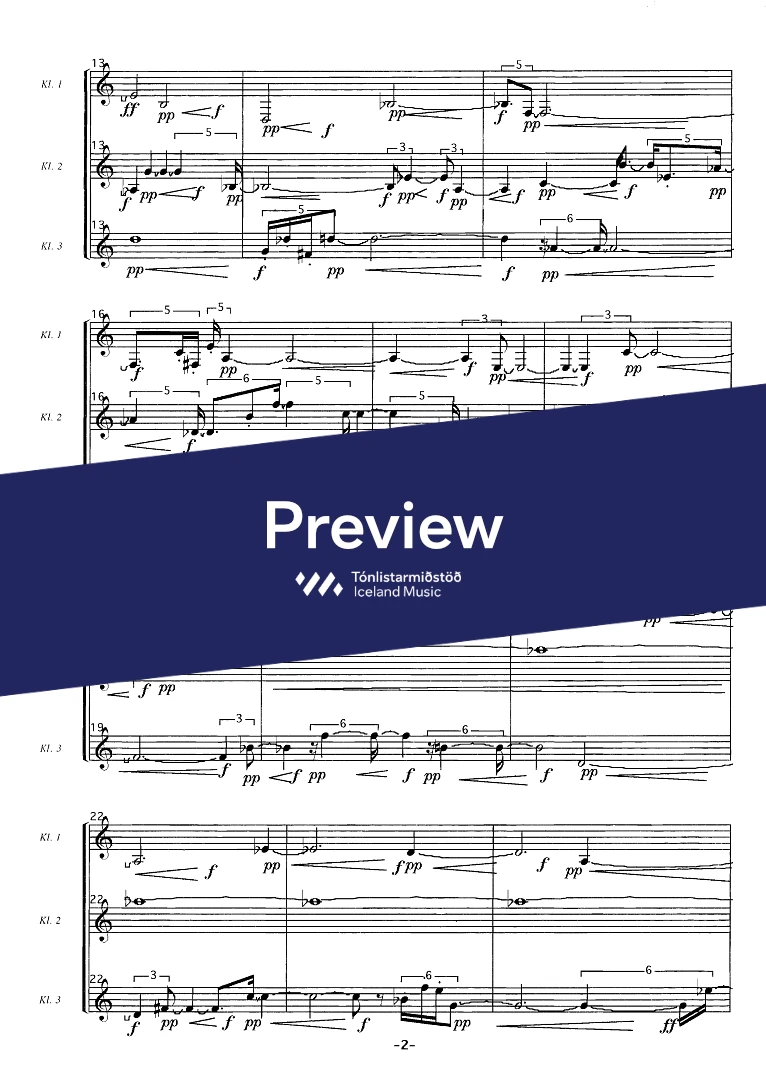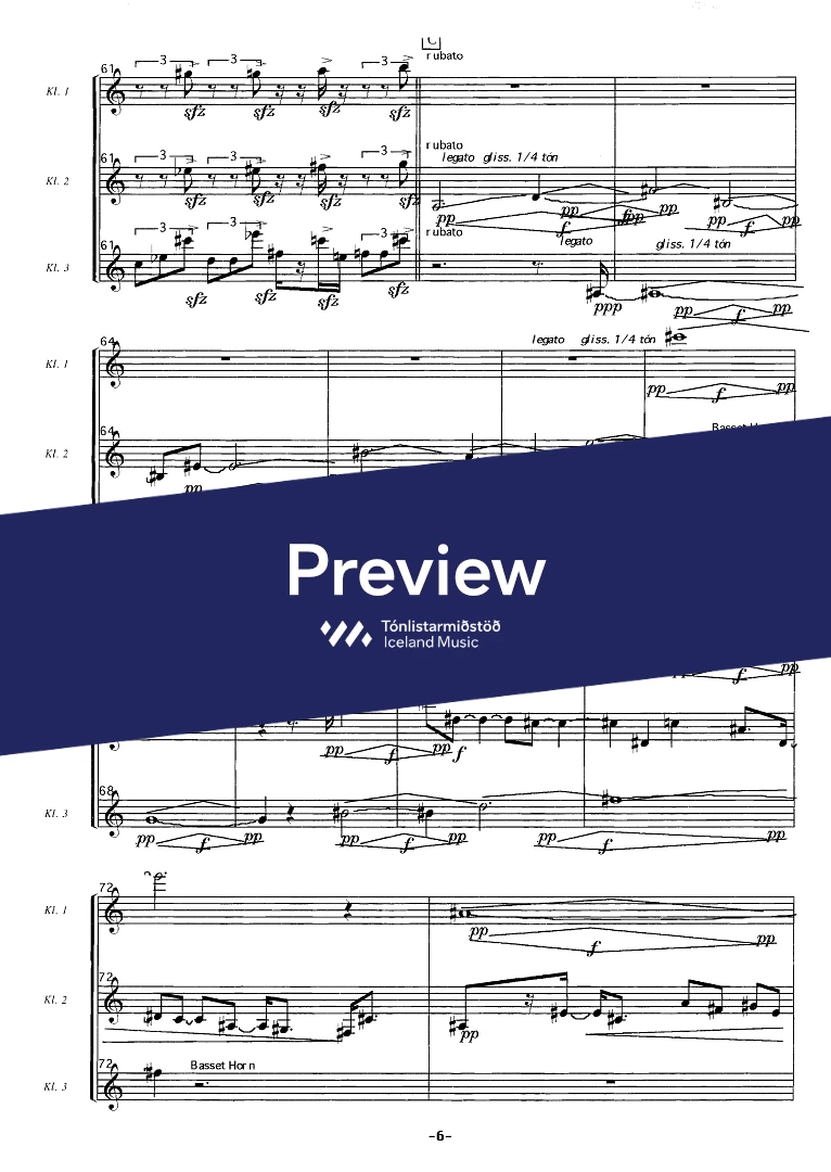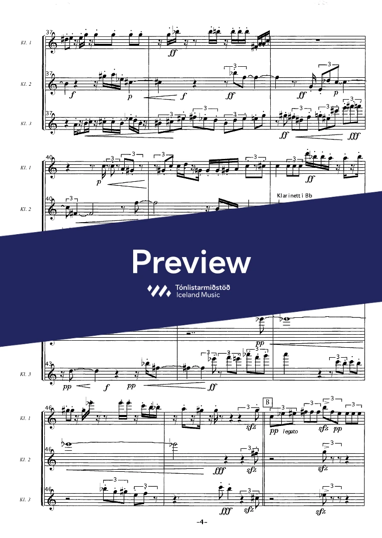 2(picc.),0,4(Bcl, Eb-kl.,)0 - 0,1,0,0, - slv.(2) -pno.(2), guit. - vln.(2),vla., Db.
