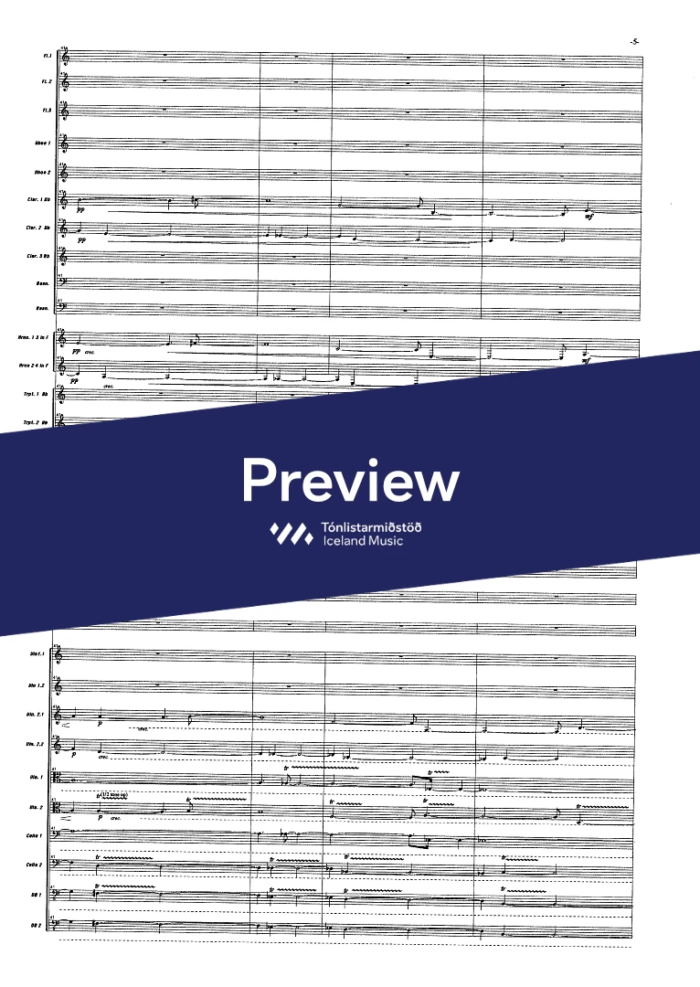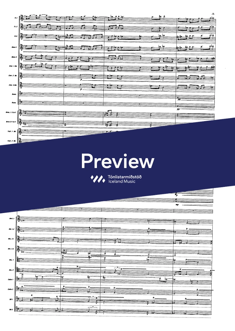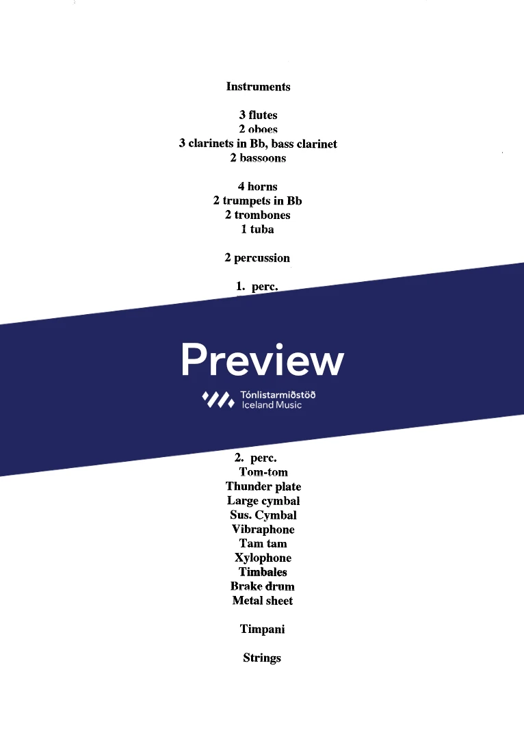 2(picc.),0,4(Bcl, Eb-kl.,)0 - 0,1,0,0, - slv.(2) -pno.(2), guit. - vln.(2),vla., Db.