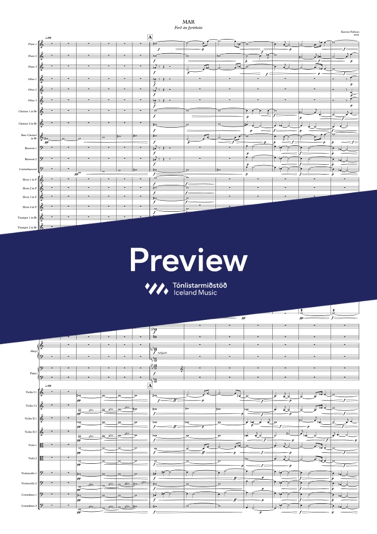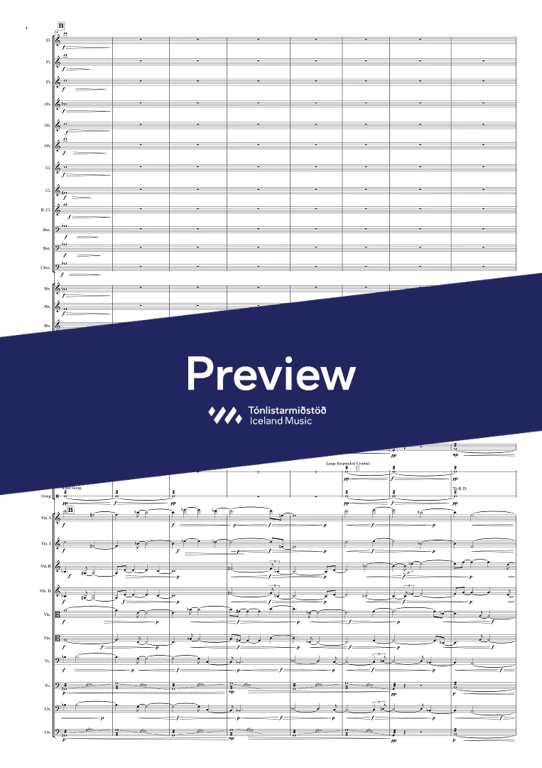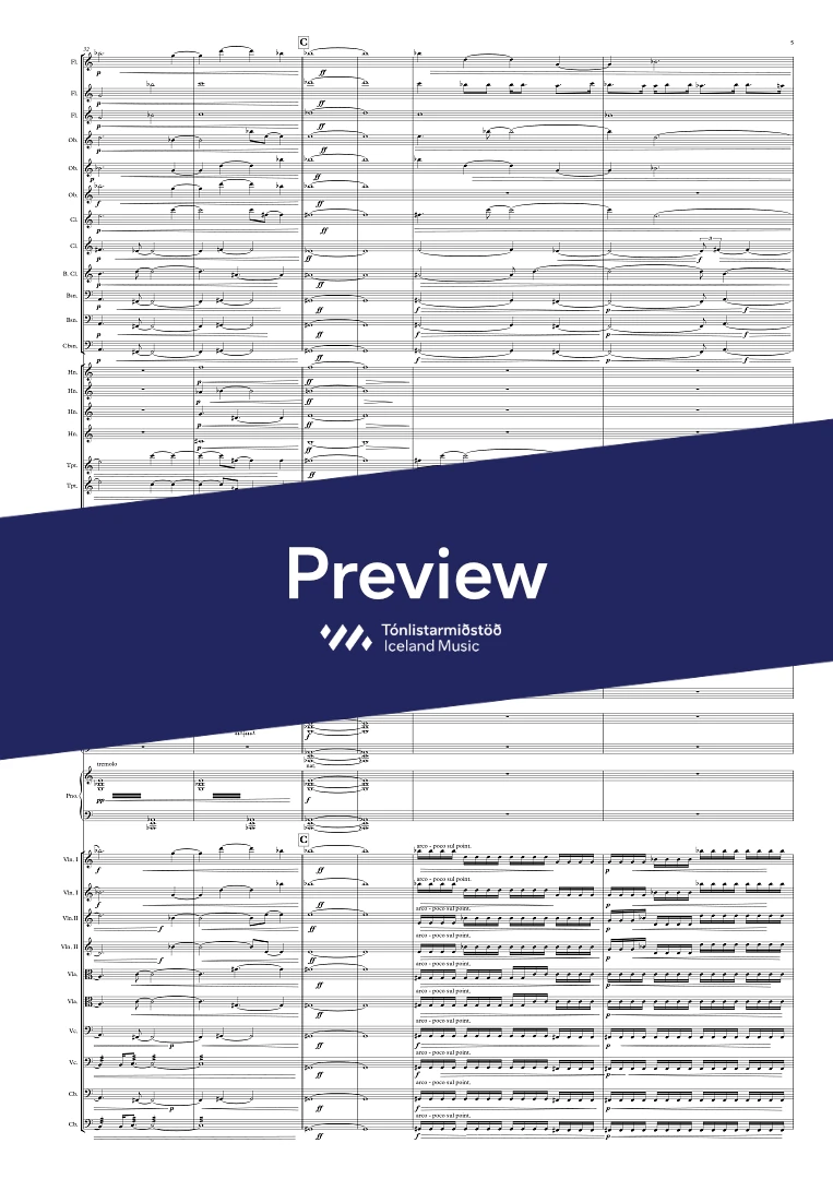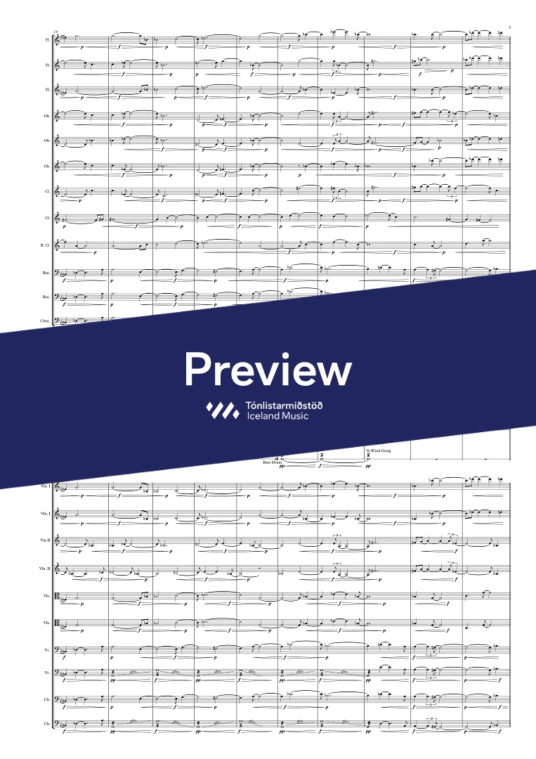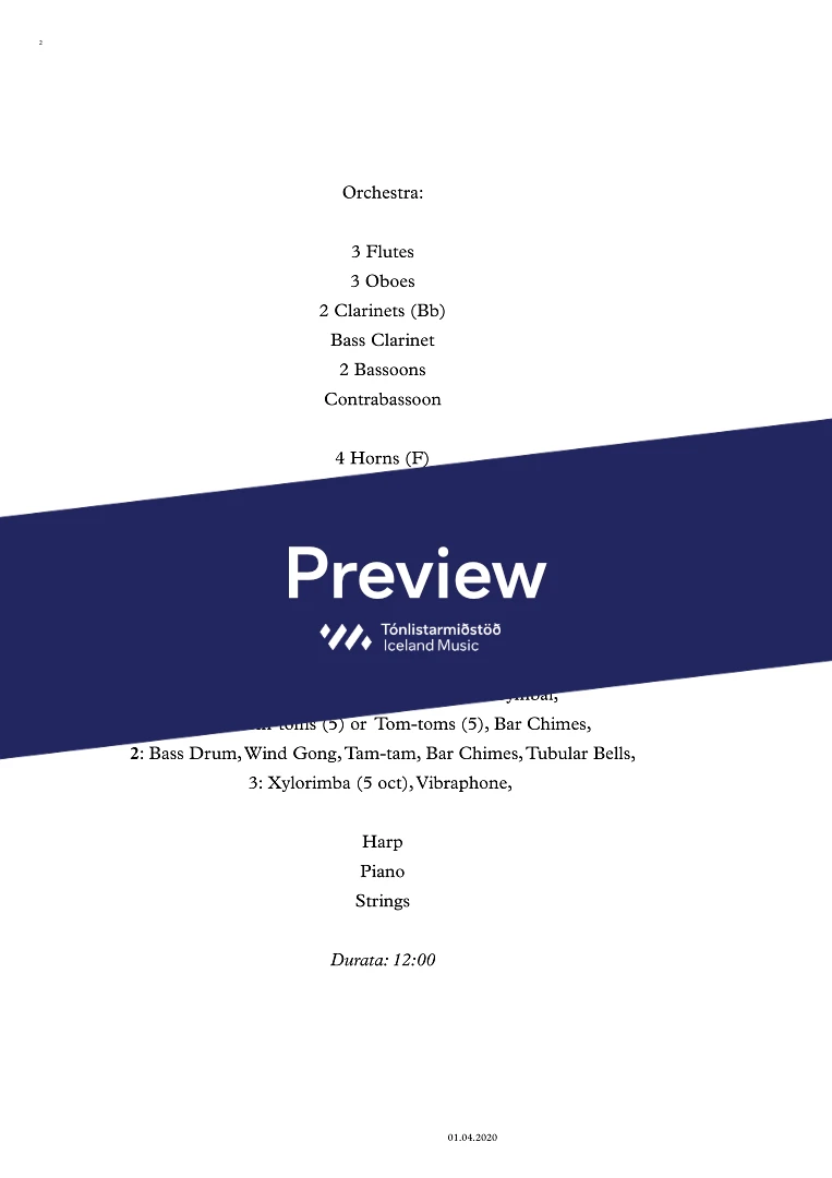 Instrumentation 3.3.3.(3. B.cl.) - 4.2.3 (3. B.trb.).4. - timp - 2 perc. - hp - pf - strings