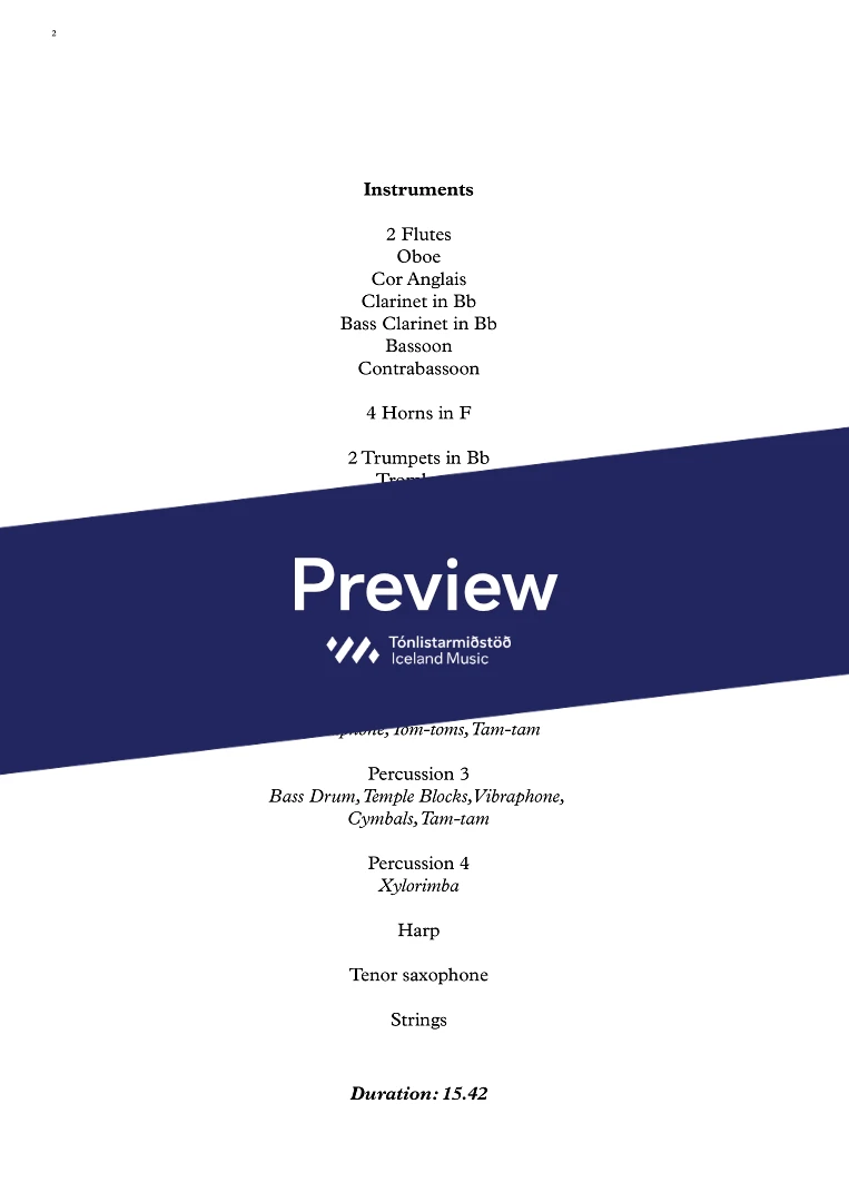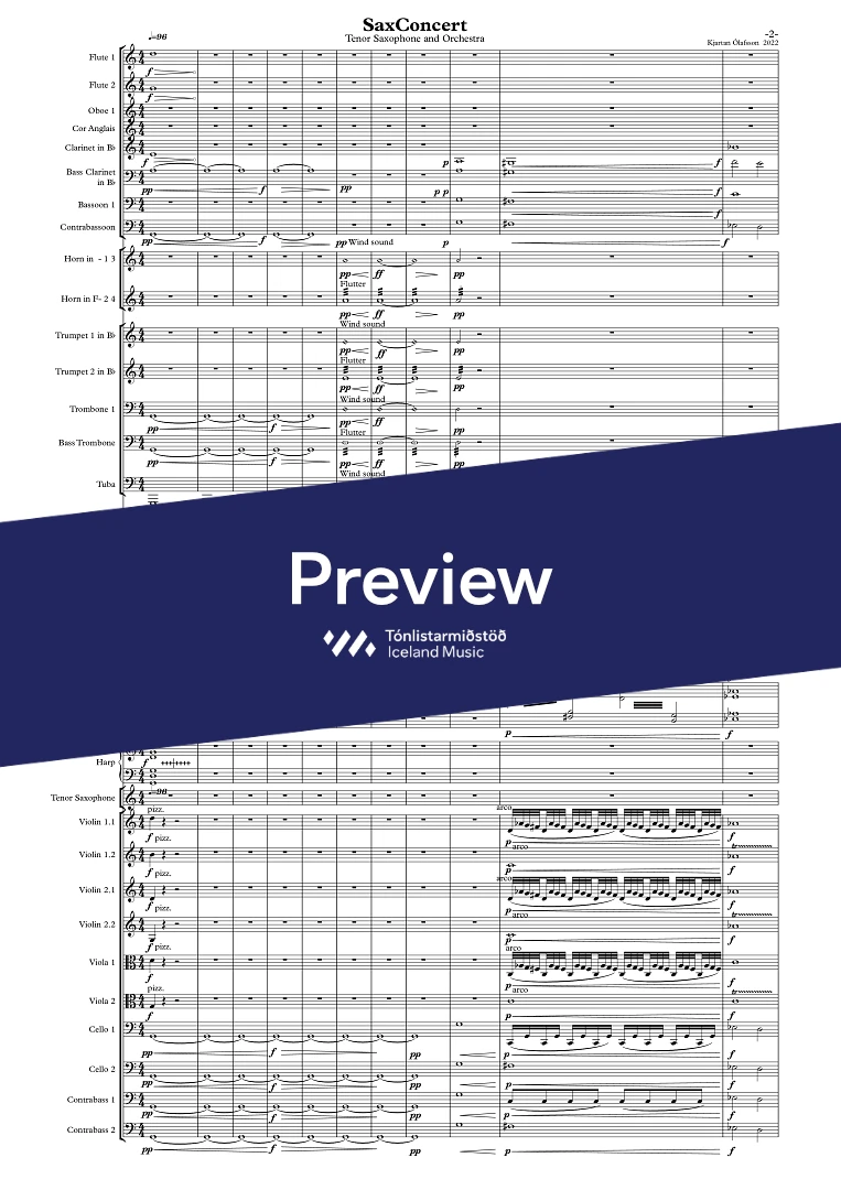 2.2(EH).2(BClar).2(CBsn).-4.2.1.1.; Ten.Sax/solo)Timp.,Perc(4).Harp, Strings