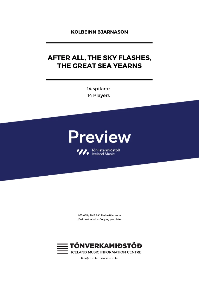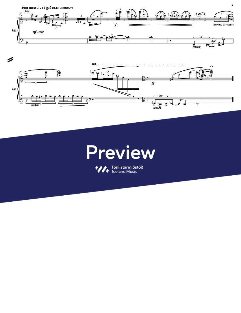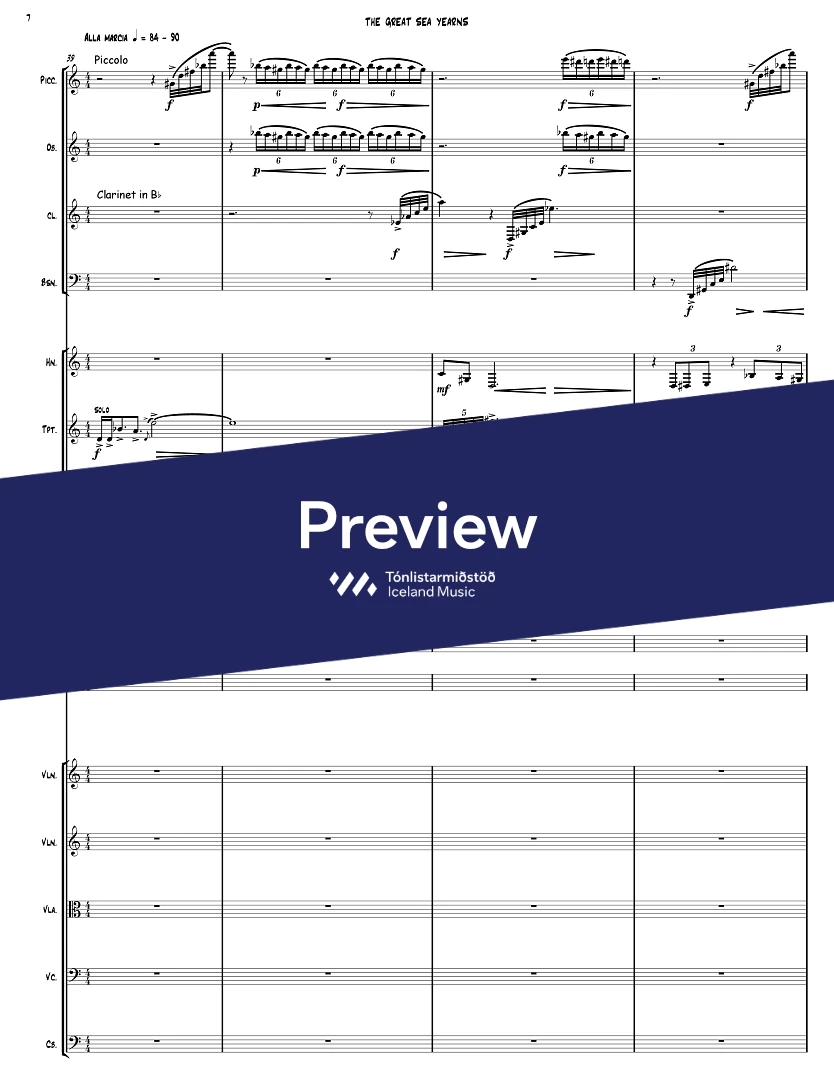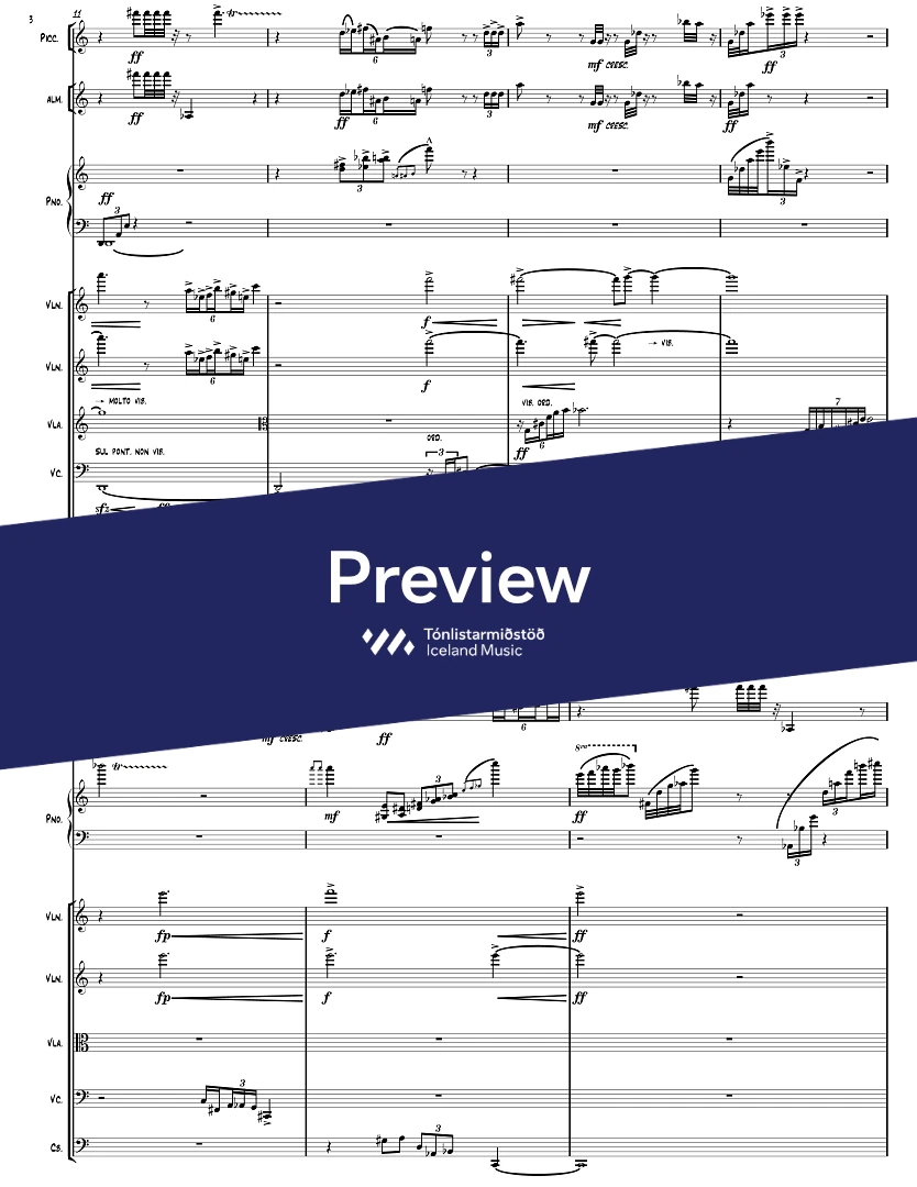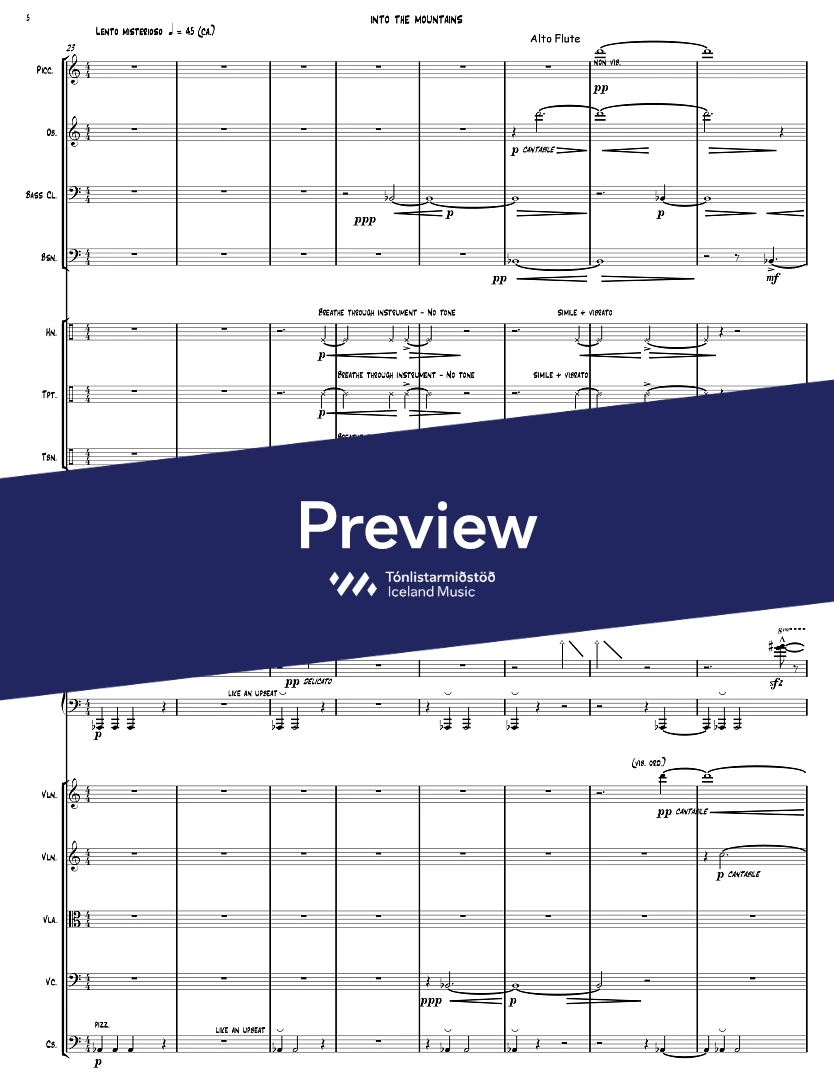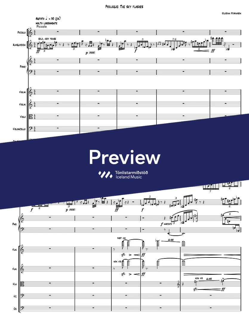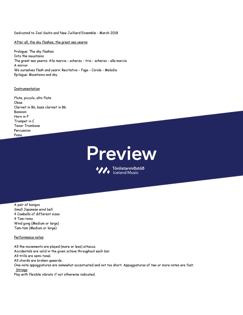 InstrumentationFlute, Piccolo Flute, Alto Flute, Bass Clarinet, Bassoon, French Horn, Trumpets, Trombone, Percussion, Piano, Violin, Viola, Cello, Double Bass