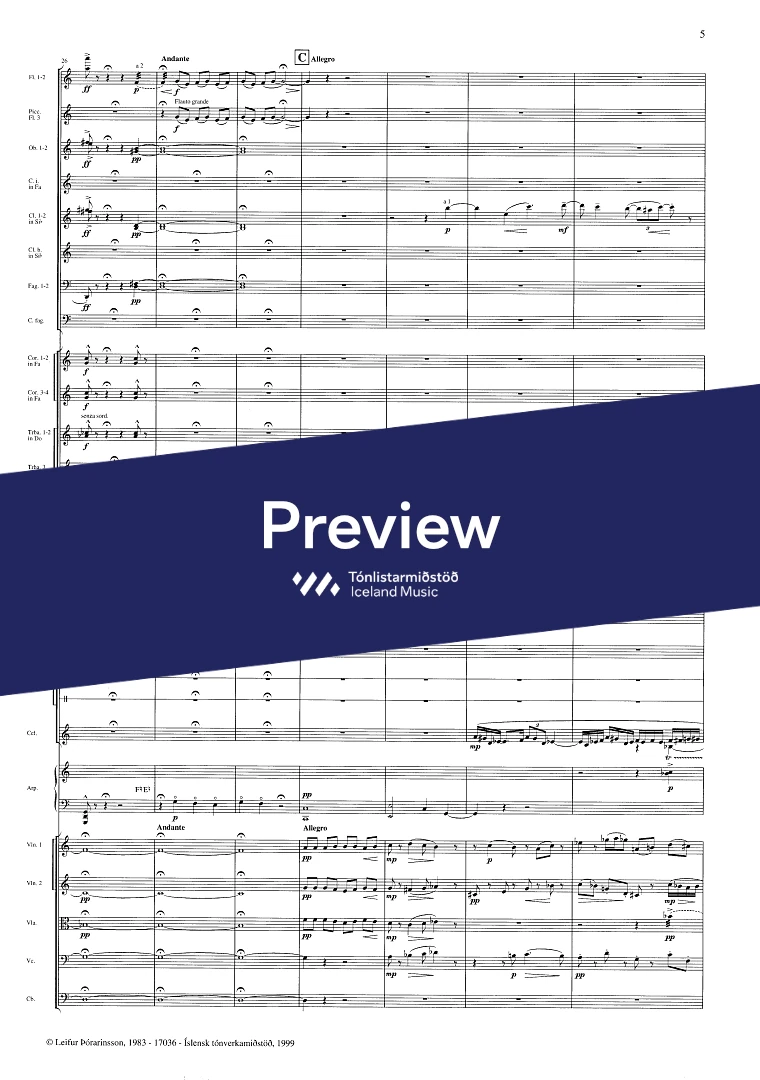 2(picc.) 2(c-ang.) 2(Bcl.) 2(Cbn) - 4,3,3,1 - tmp. - perc. - hp. - cel. - str.