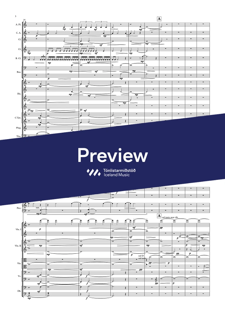 Instrumentation 3(Afl.)3(c-angl.)3(bcl.)2. - 4.3(flughn)2.1. - perc. - hp. - pno. - str.