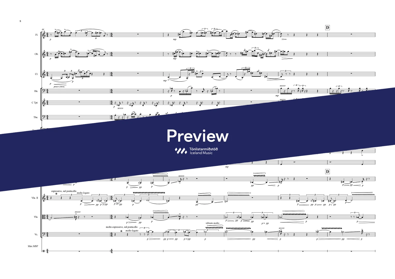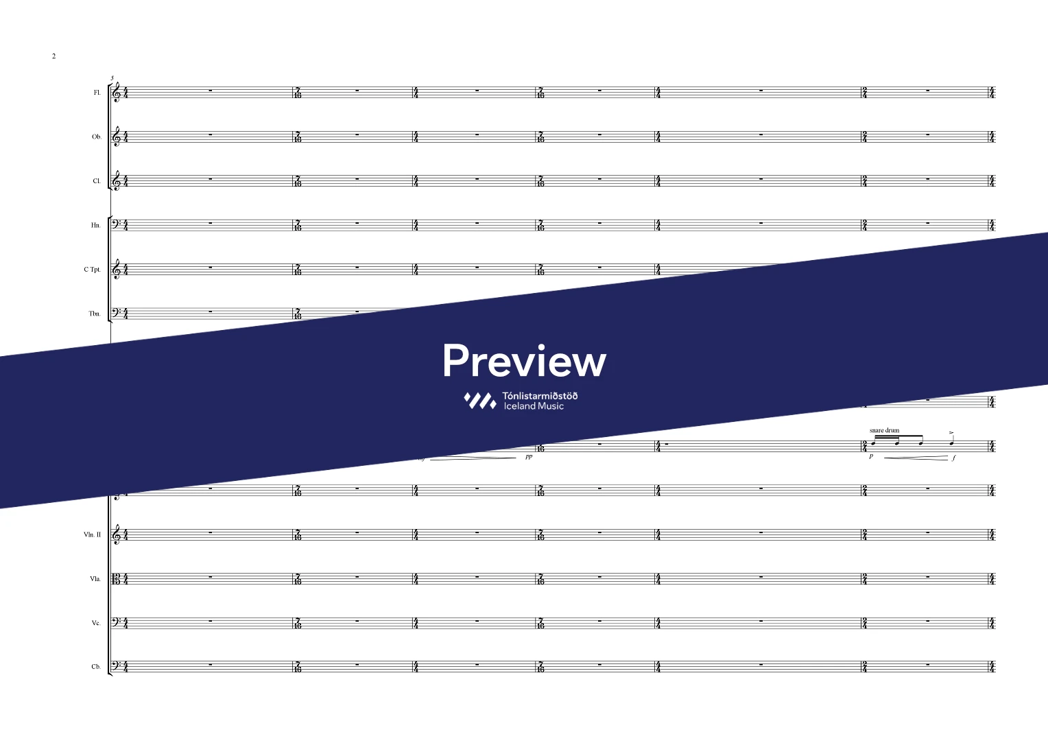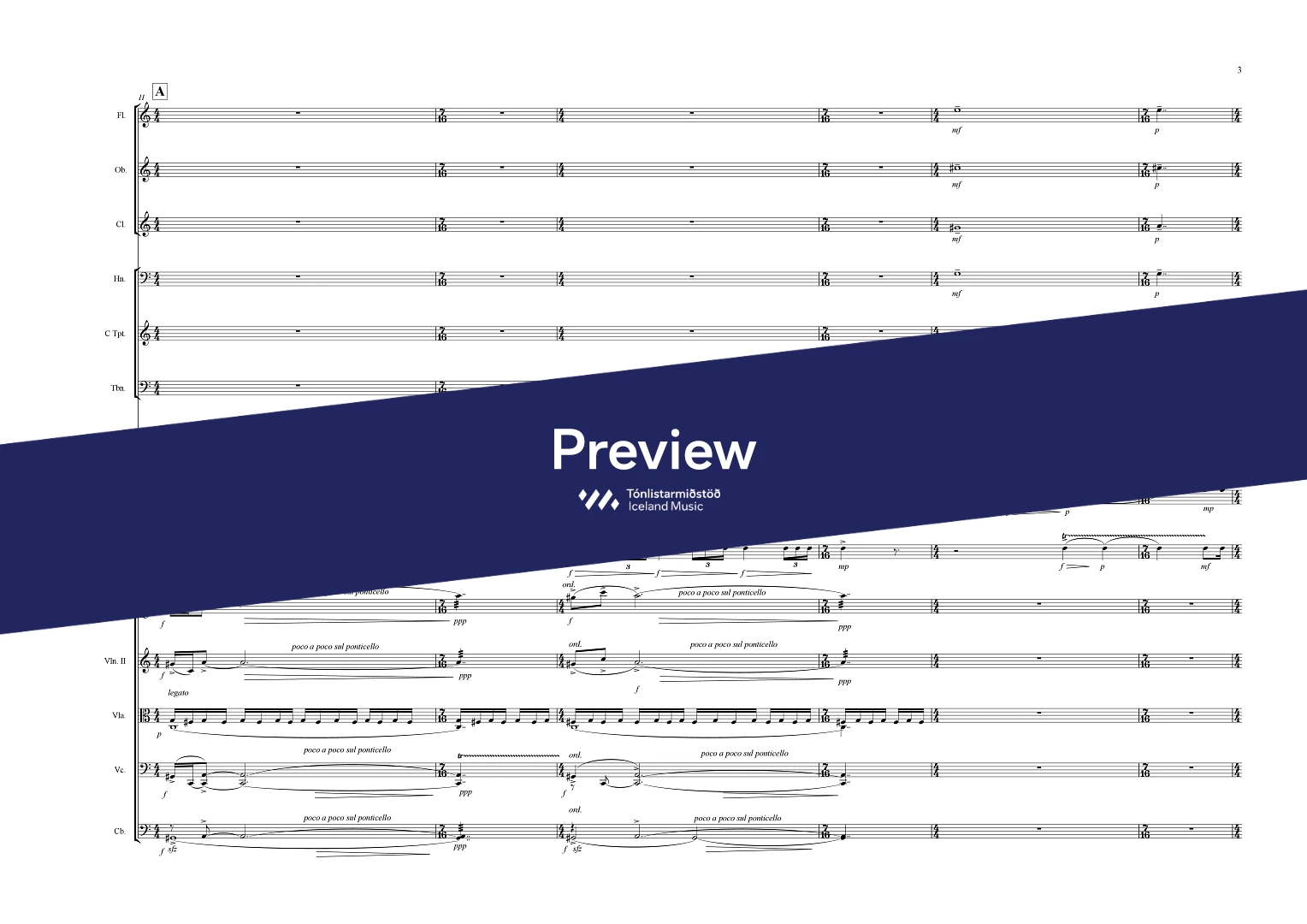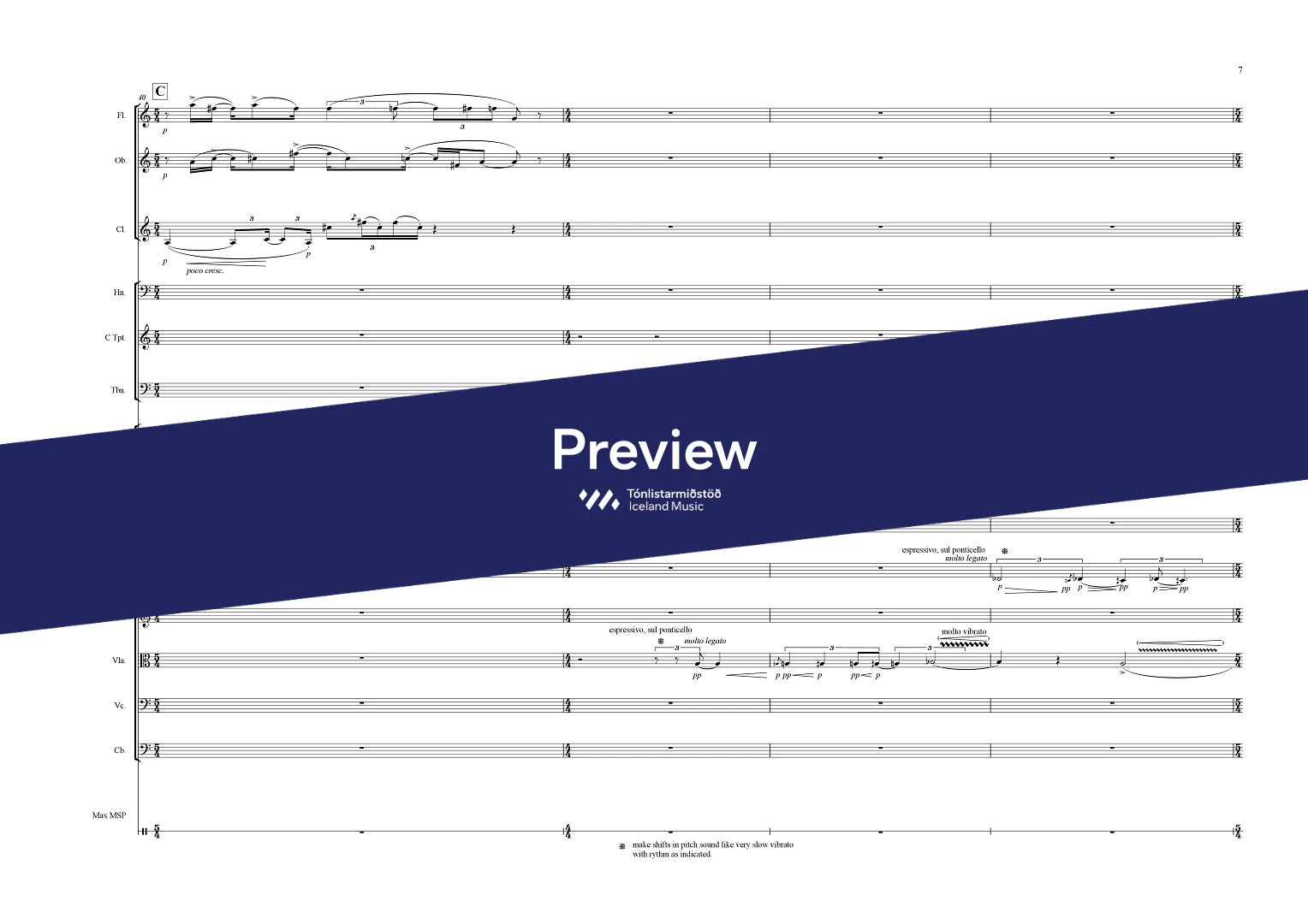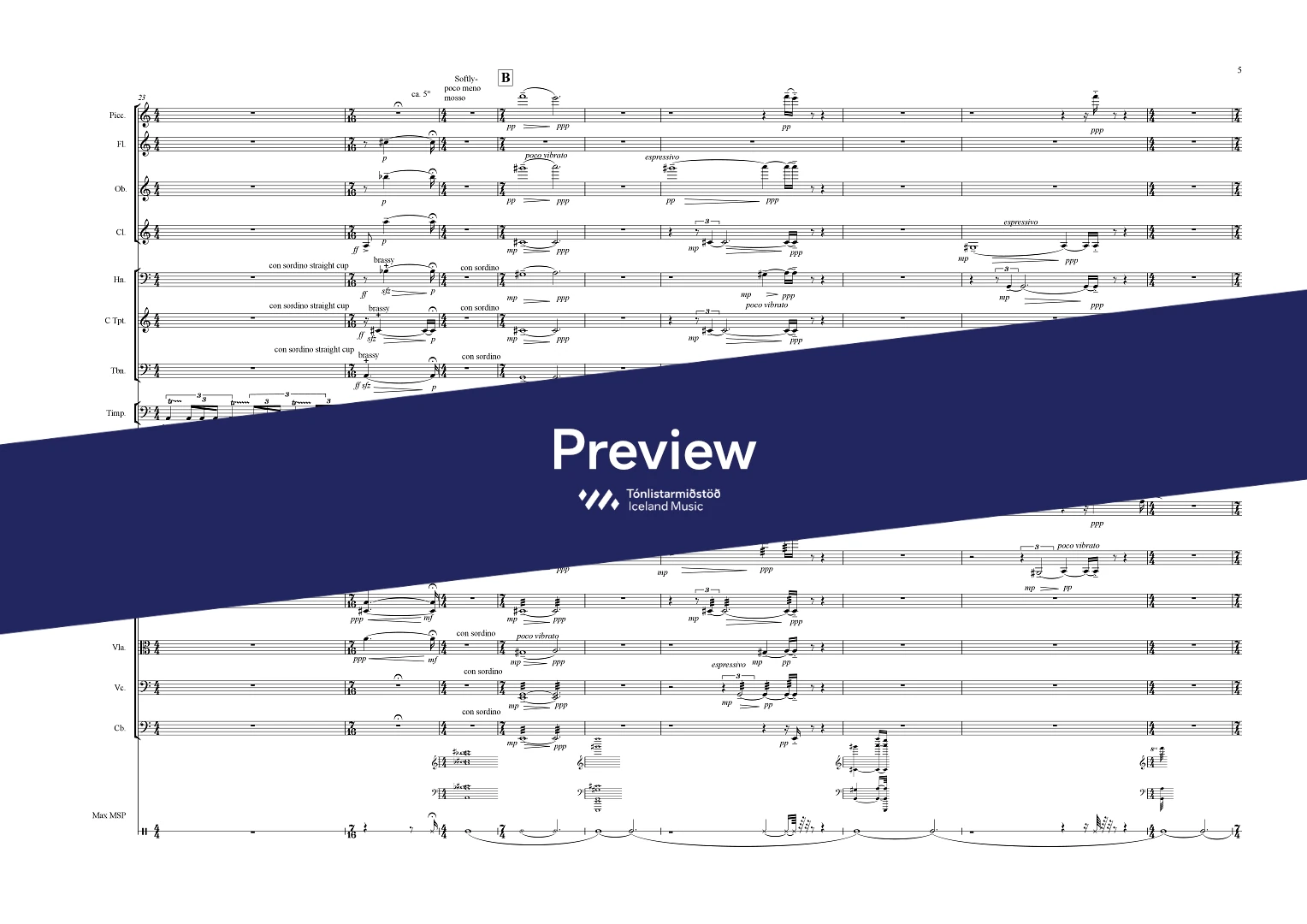 Instrumentation fl, ob, cl, hn, tpt, tbn, timp, perc.1, perc.2, electronics - 2 vln, vla, vc, db