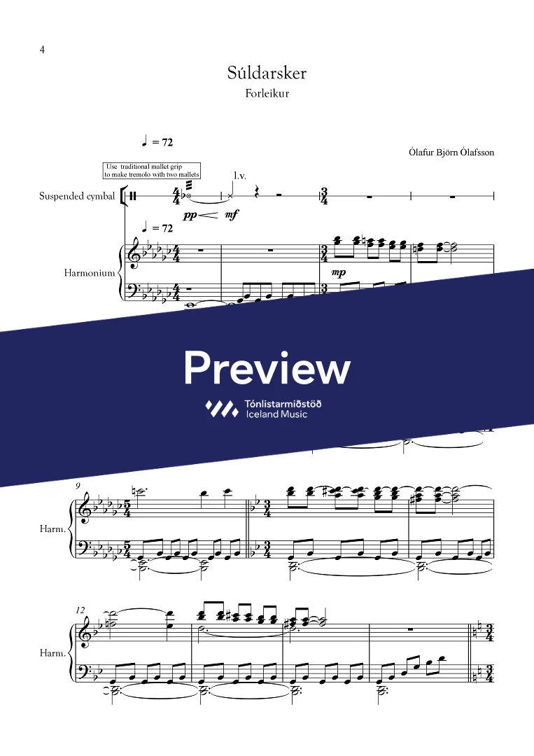 InstrumentationPercussion, Glockenspiel, Cymbal, Harmonium
