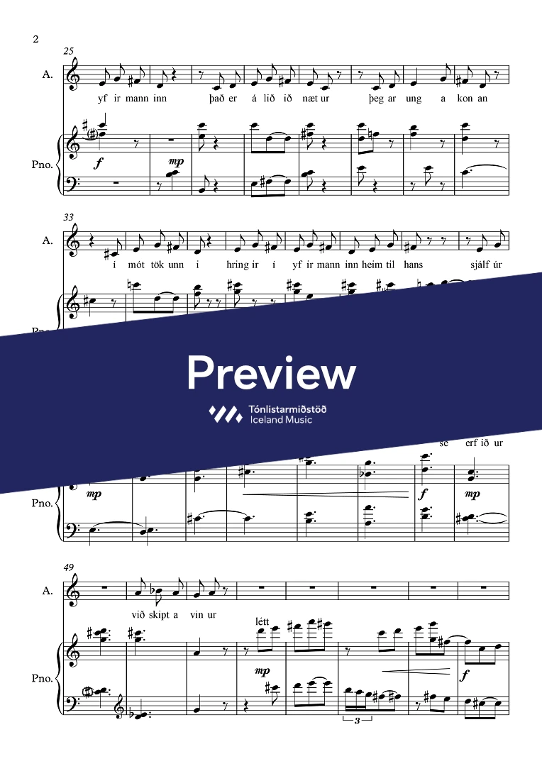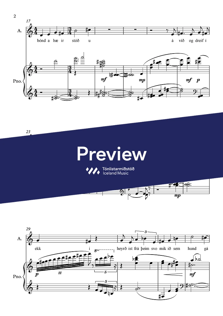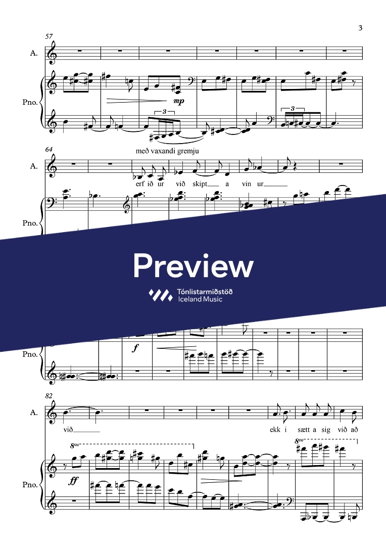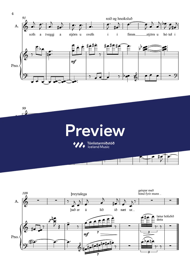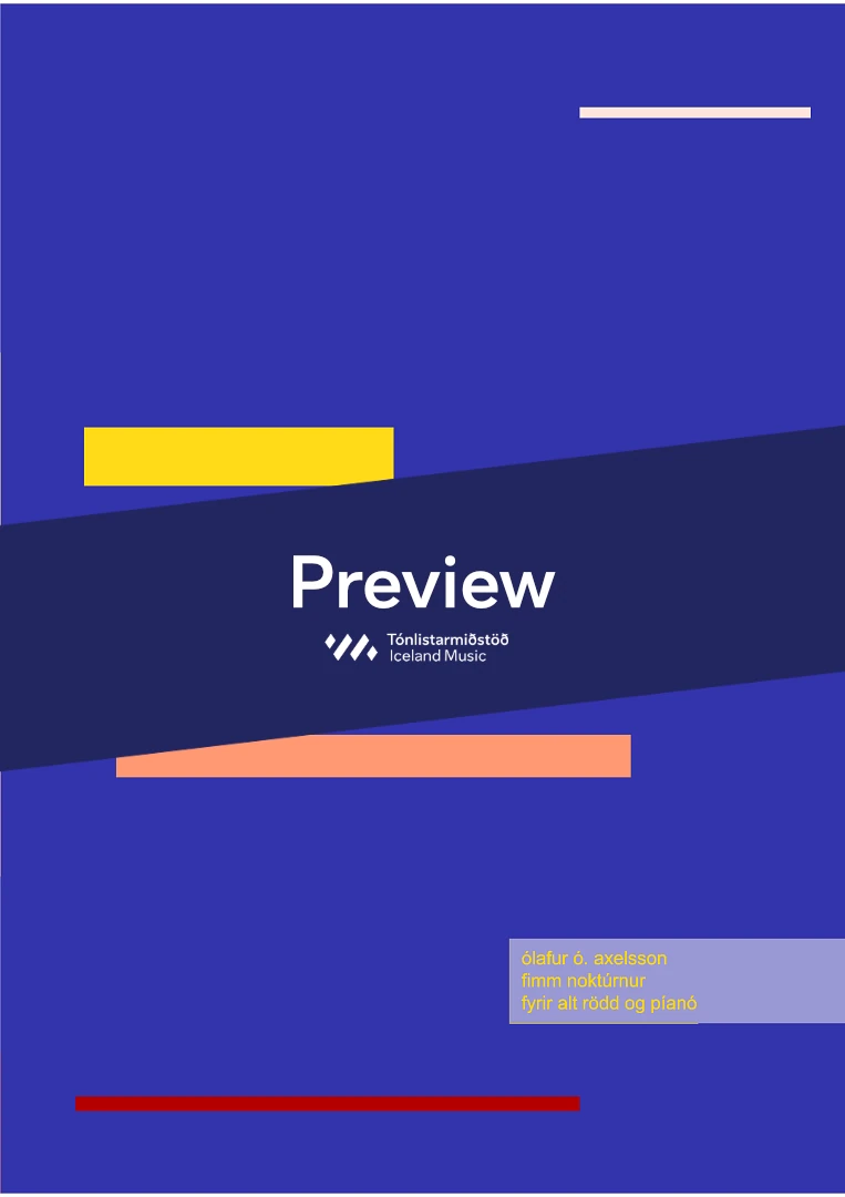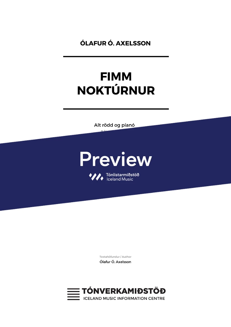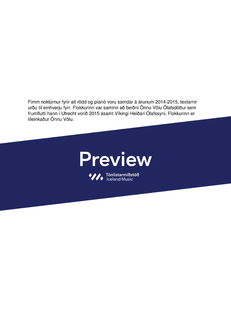 These five nocturnes were composed 2014-15, to previously written texts. They were composedat the request of singer Anna Vala Ólafsdóttir, who premiered them in Utrecht in 2015, accompanied by Víkingur Heiðar Ólafsson. The work is dedicated to Anna Vala.