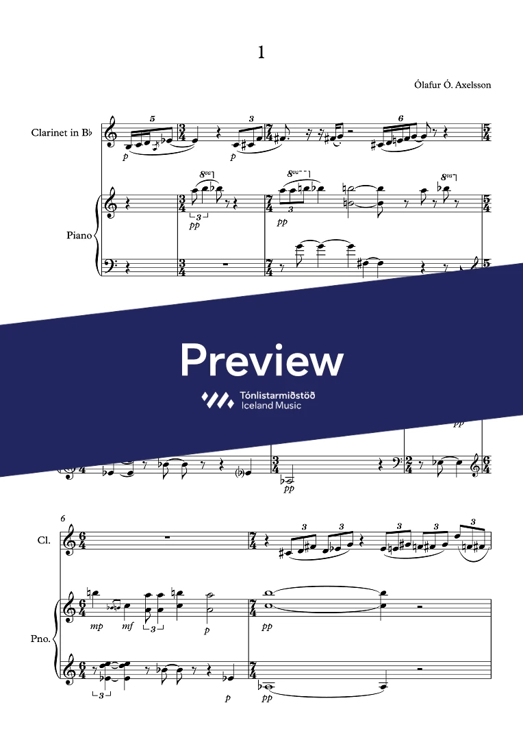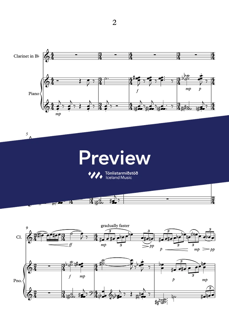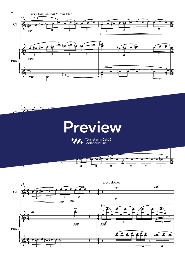 Price for score only. To purchase the clarinet part, please contact itm@mic.is