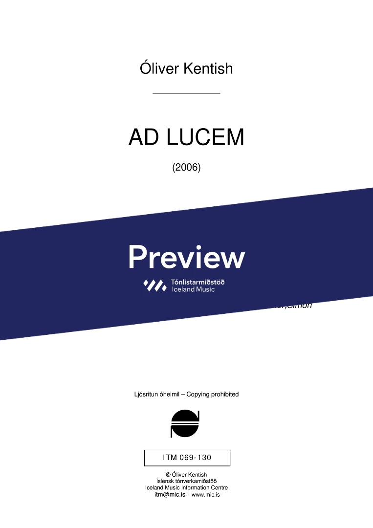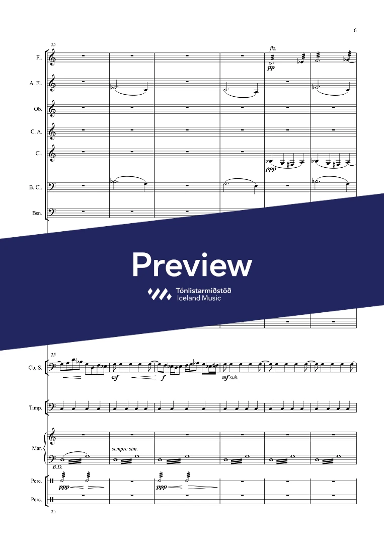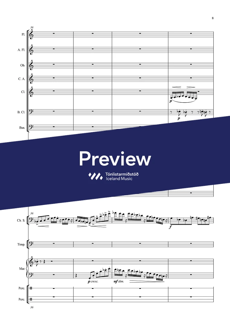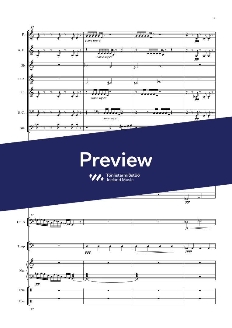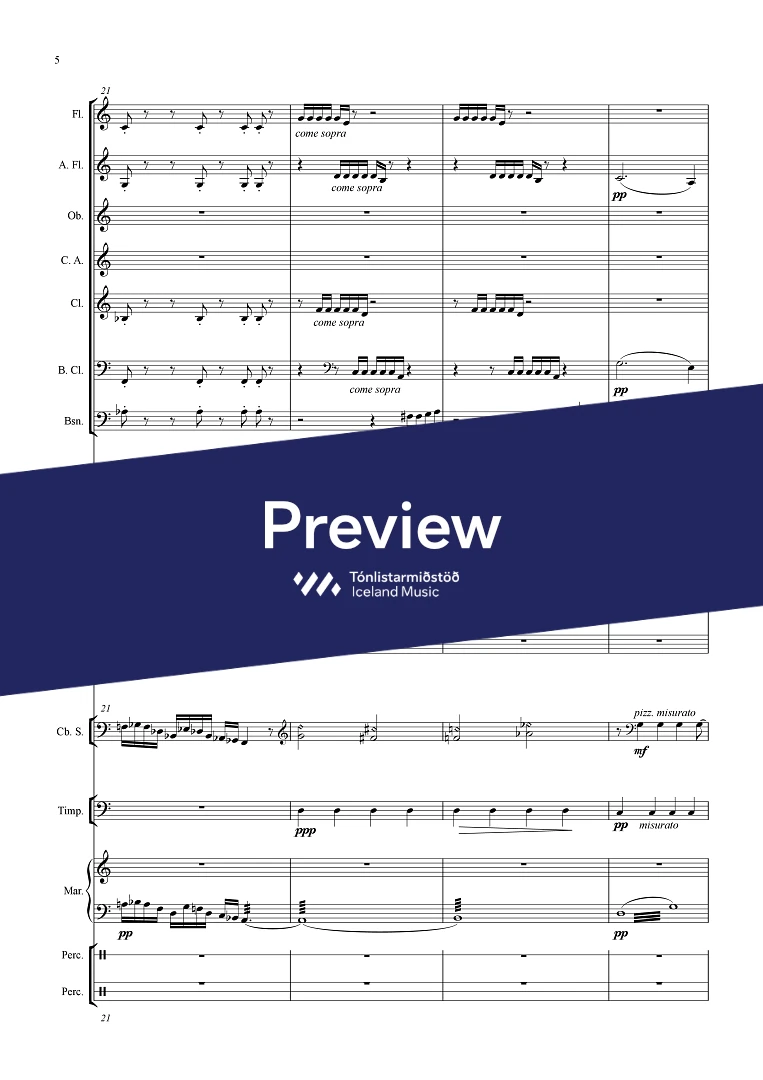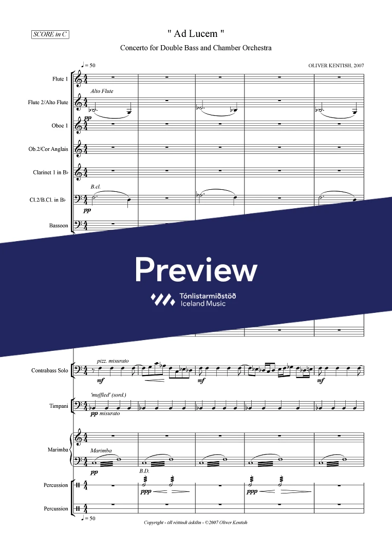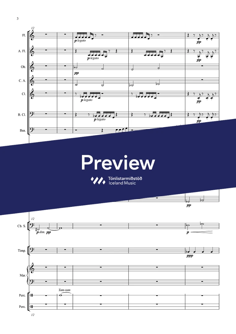 Instrumentation 2(picc./a.fl.) 2(c.ang.) 2(bcl.) - 1,1,1,1 - tmp. - perc.(3) - bass solo