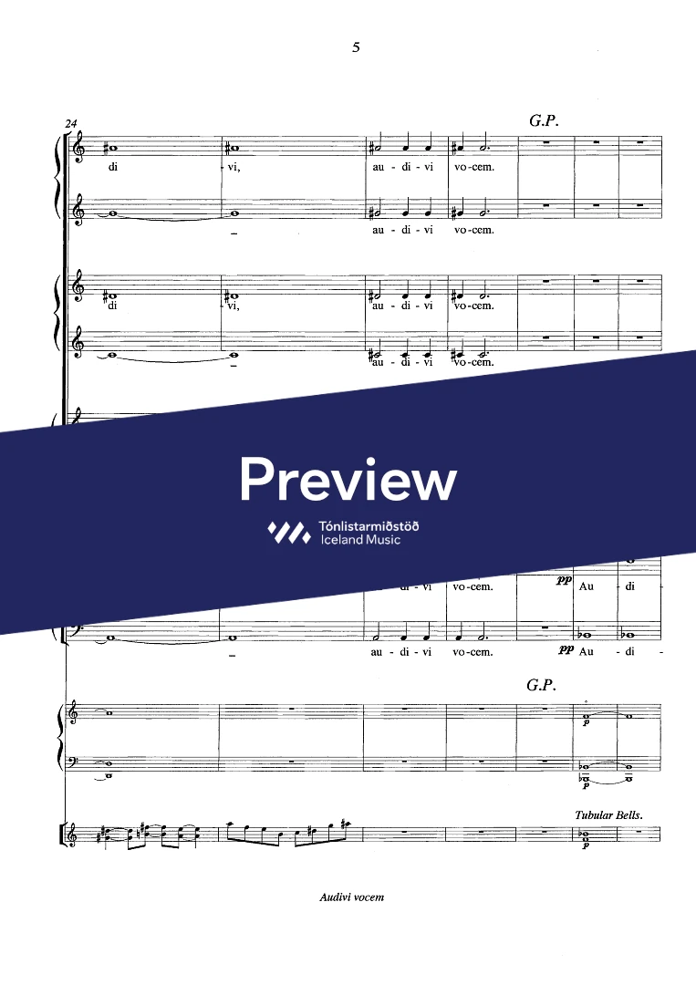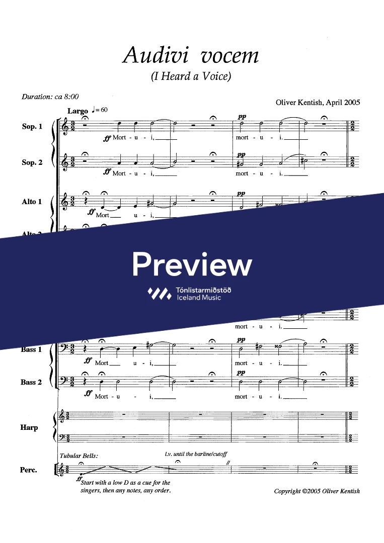 InstrumentationPercussion, Harp, Double choir / Triple choir, Choir unison