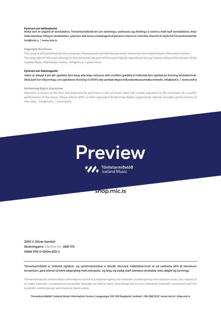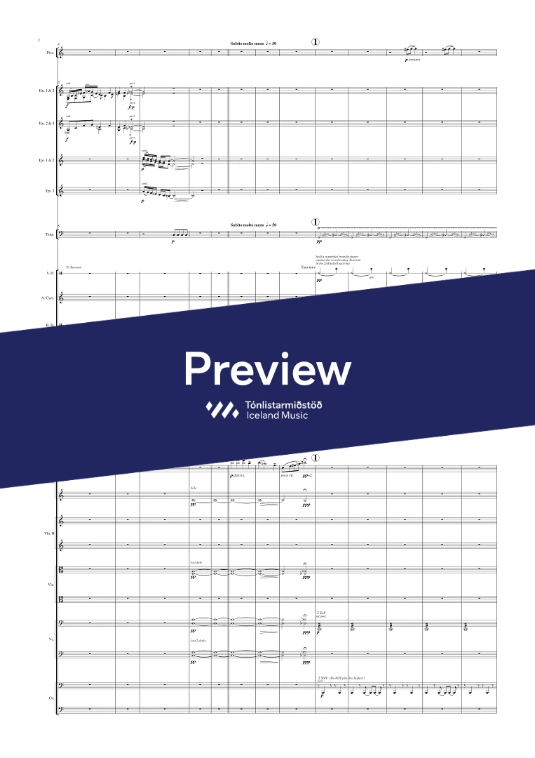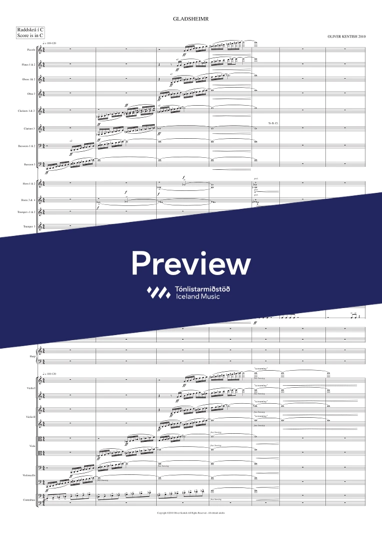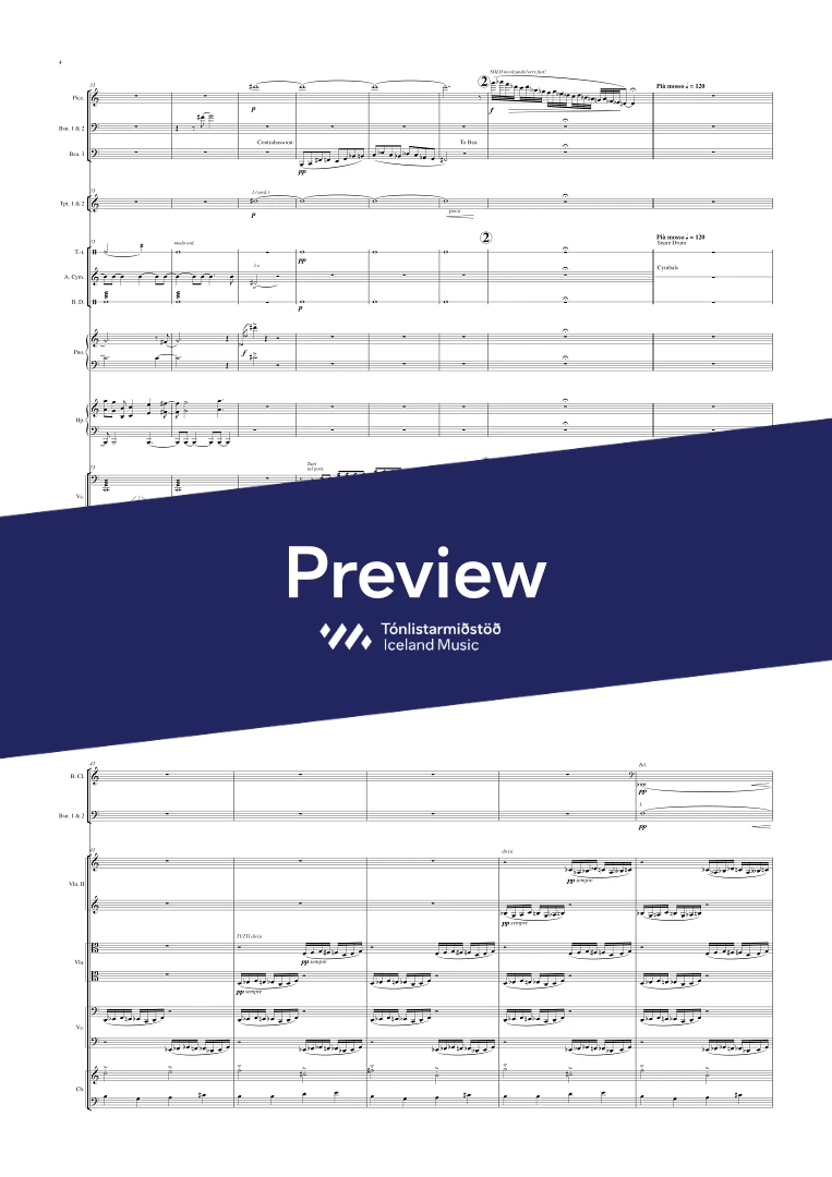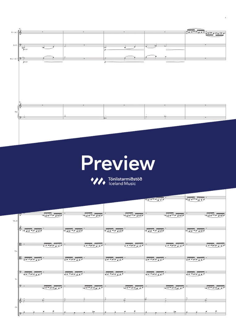 Instrumentation 3 (picc), 3, 3( bcl.), 3 (Cfag) - 4, 3, 3, 1 - hp. - pno. sel. - tmp. perc. - str.