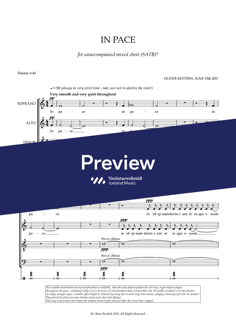 InstrumentationBass drum, Organ, Mixed choir