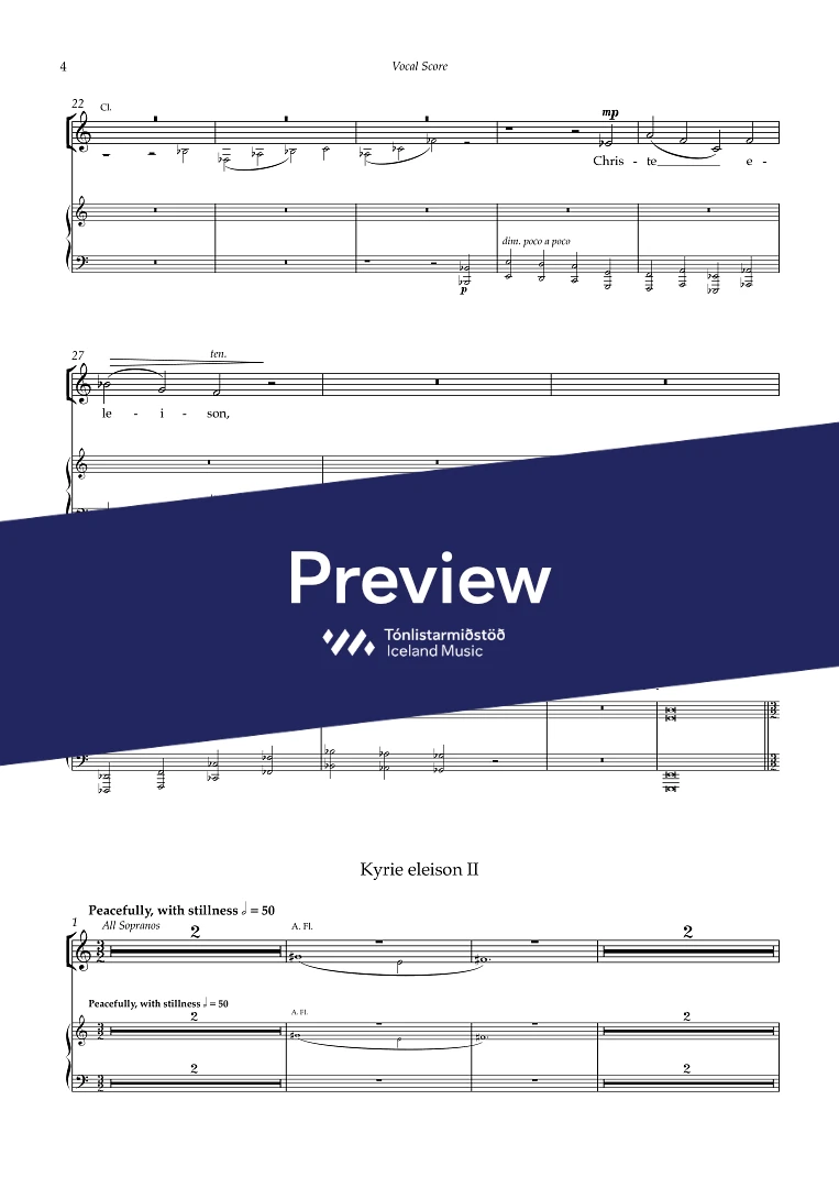 InstrumentationAlto Flute, Bass Clarinet, French Horn, Percussion, Harp, Female choir / Children’s choir