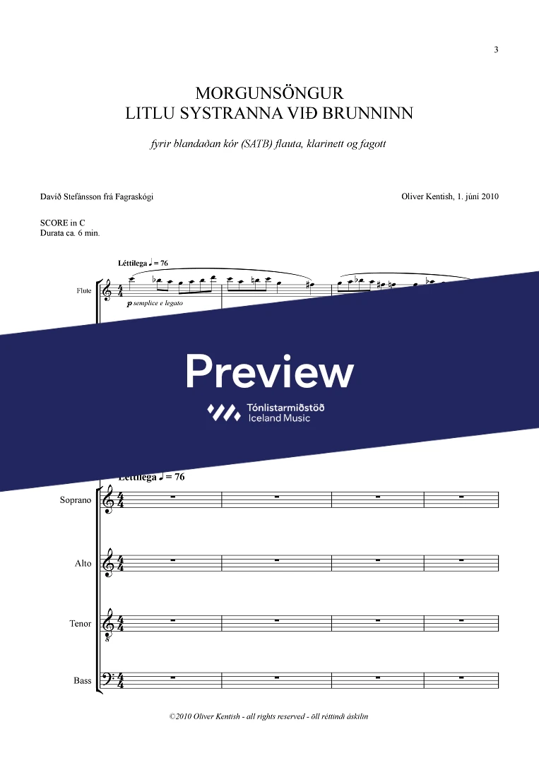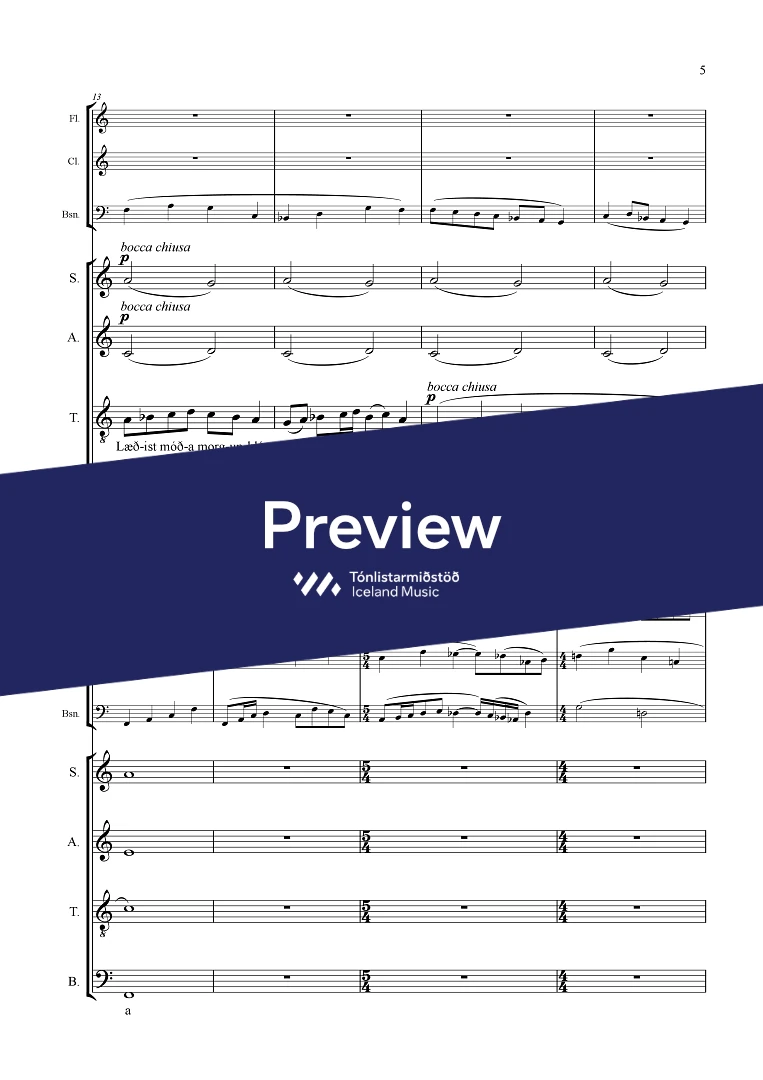 InstrumentationFlute, Clarinets, Bassoon, Mixed choir