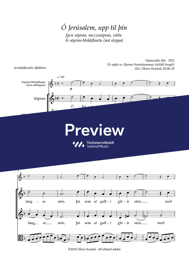 Text sampleÓ Jerúsalem, upp til þín önd langar mín