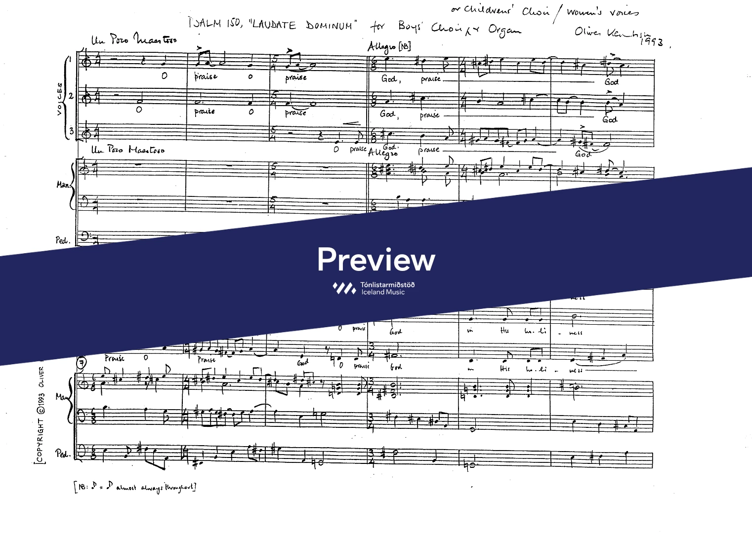 Categories Sacred music, Choral music, Choir + one or 2 instruments