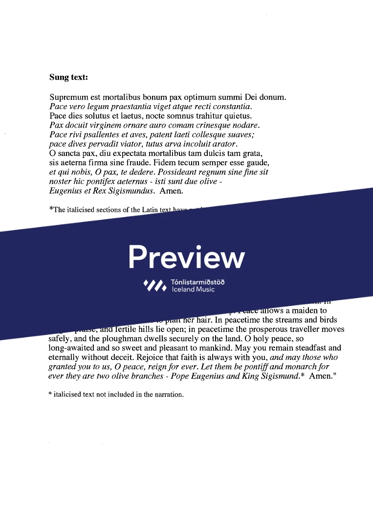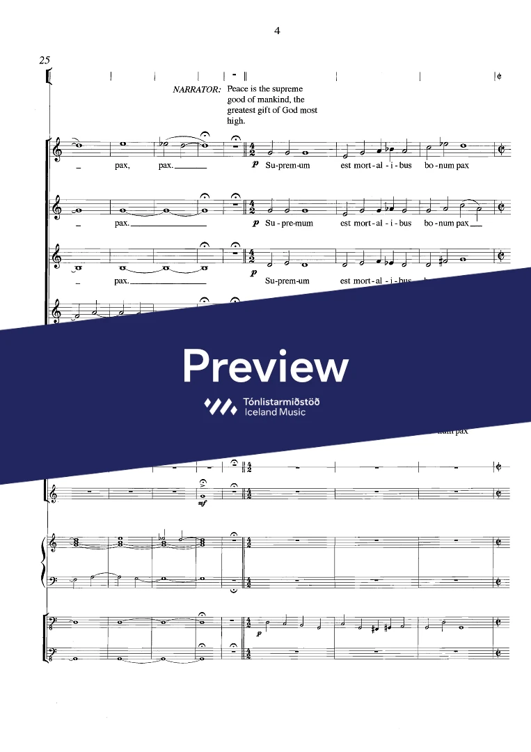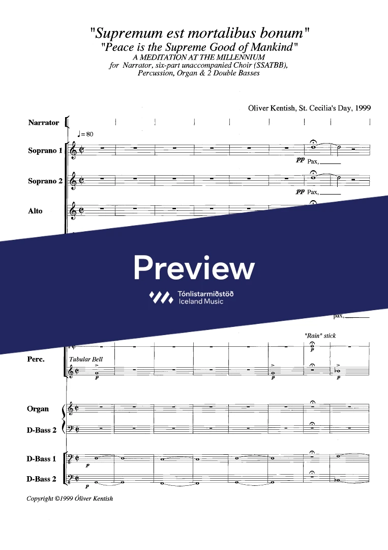 InstrumentationPercussion, Organ, Narrator, Mixed choir, Double Bass
