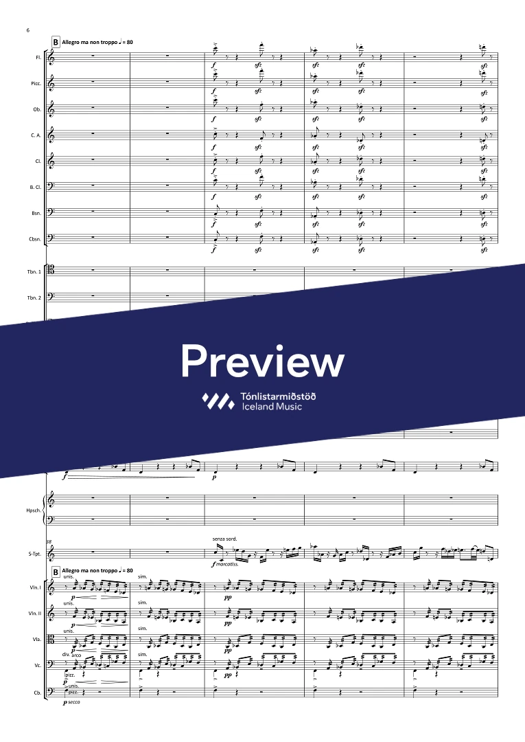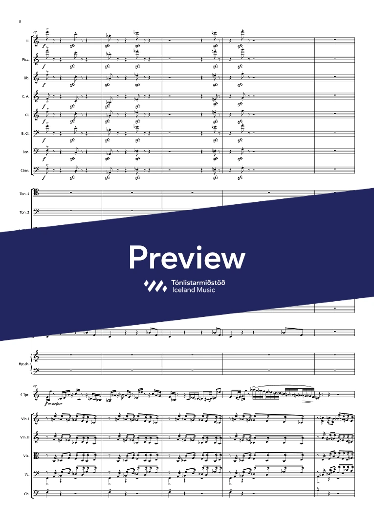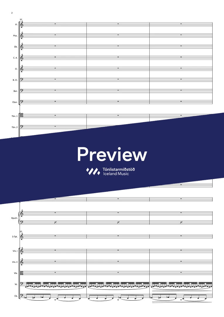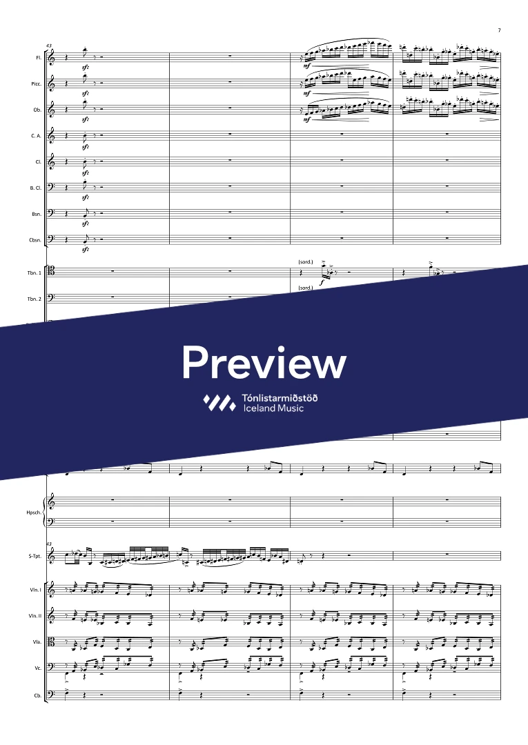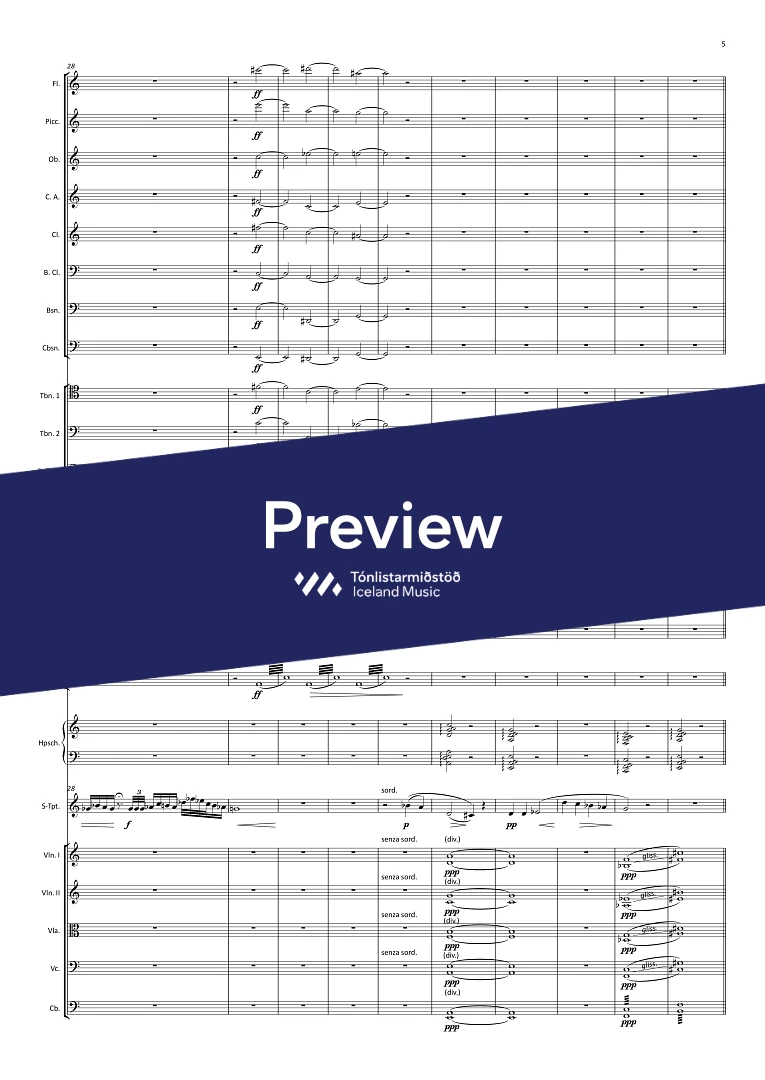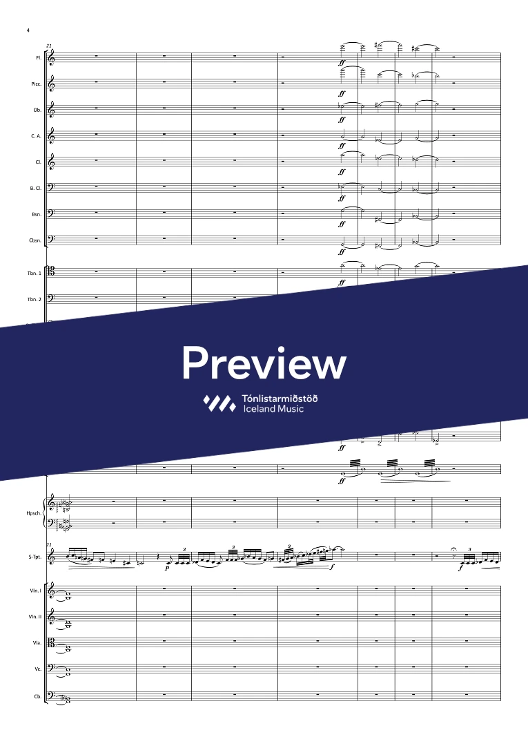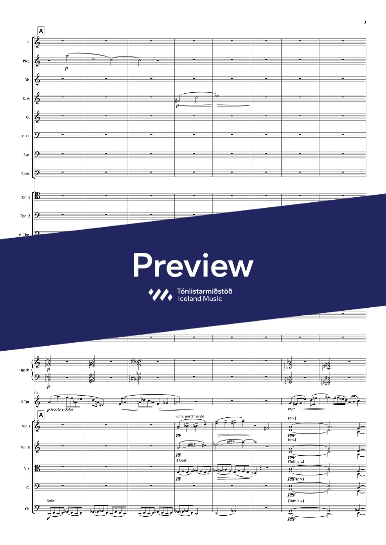 1,picc.,1, c-ang., 1, Bcl., 1, Cbsn. - 0,0,3,0 - hpschd. - tmp. - perc.(4) - solo trpt. - str.