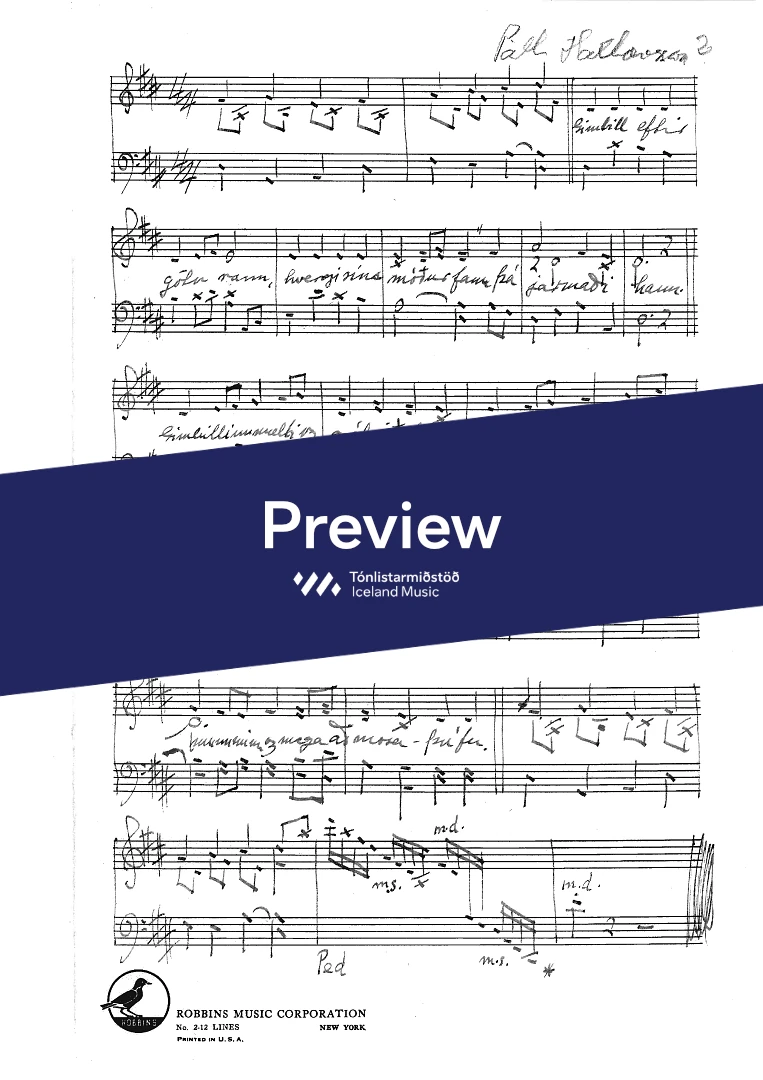 Composer Páll Halldórsson Year composed- Categories Voice + 1 instrument - Art song InstrumentationPiano, Voice Catalogue no.794-001 ISMN-