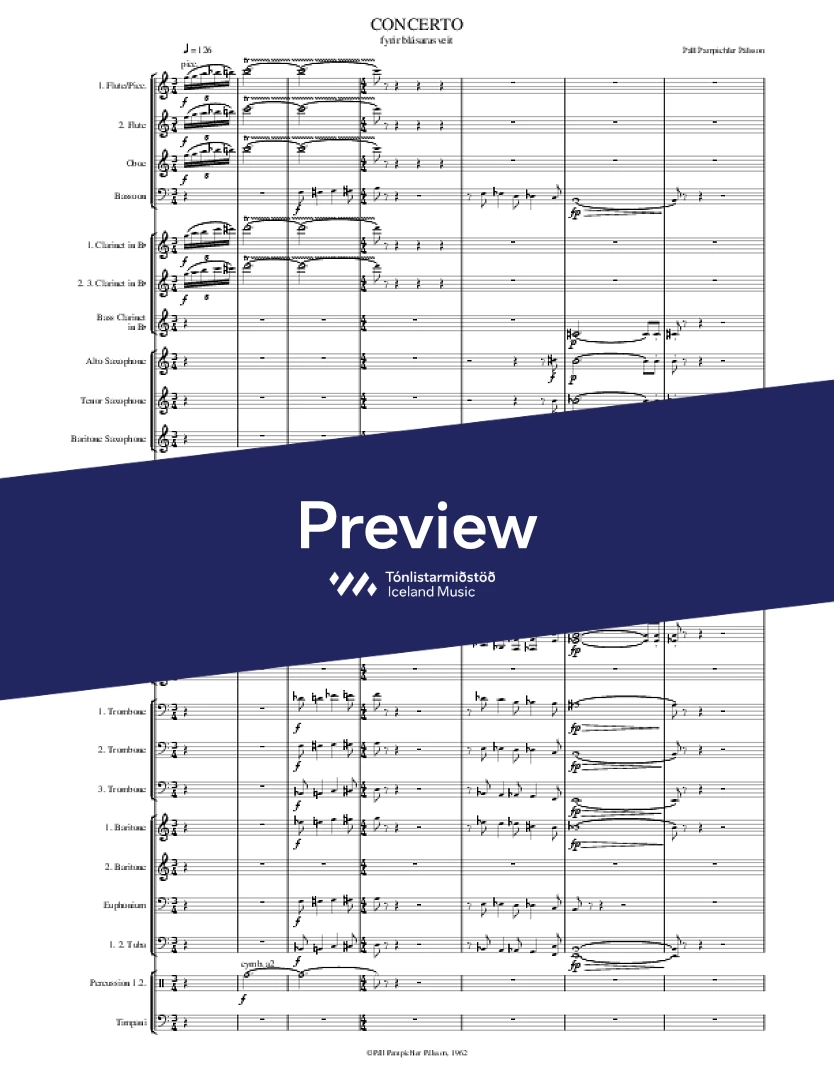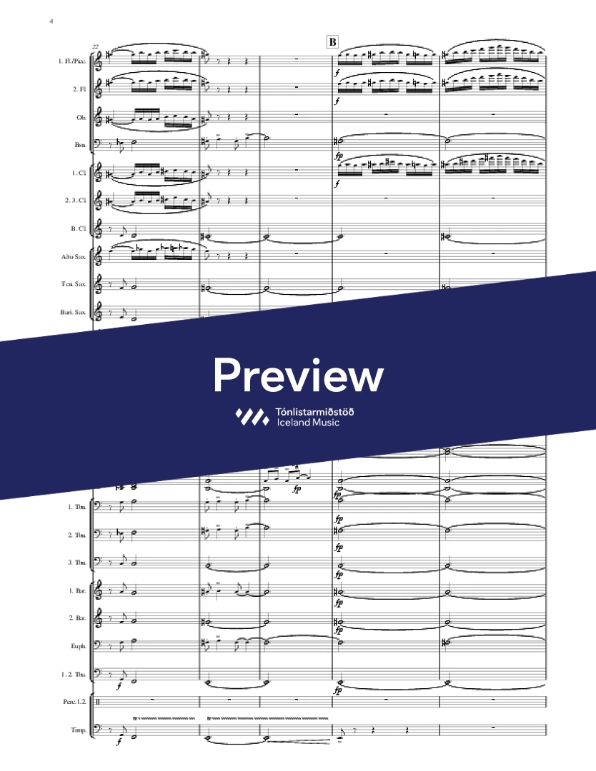 InstrumentationFlute, Oboe, Clarinets, French Horn, Baritone Horn, Cornet, Trombone, Tuba, Saxophones, Percussion