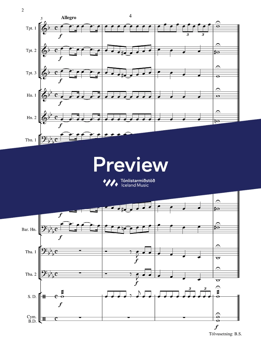 InstrumentationAlto Horn, Tenor Horn, Baritone Horn, Trumpets, Trombone, Tuba, Snare drum, Cymbal, Bass drum