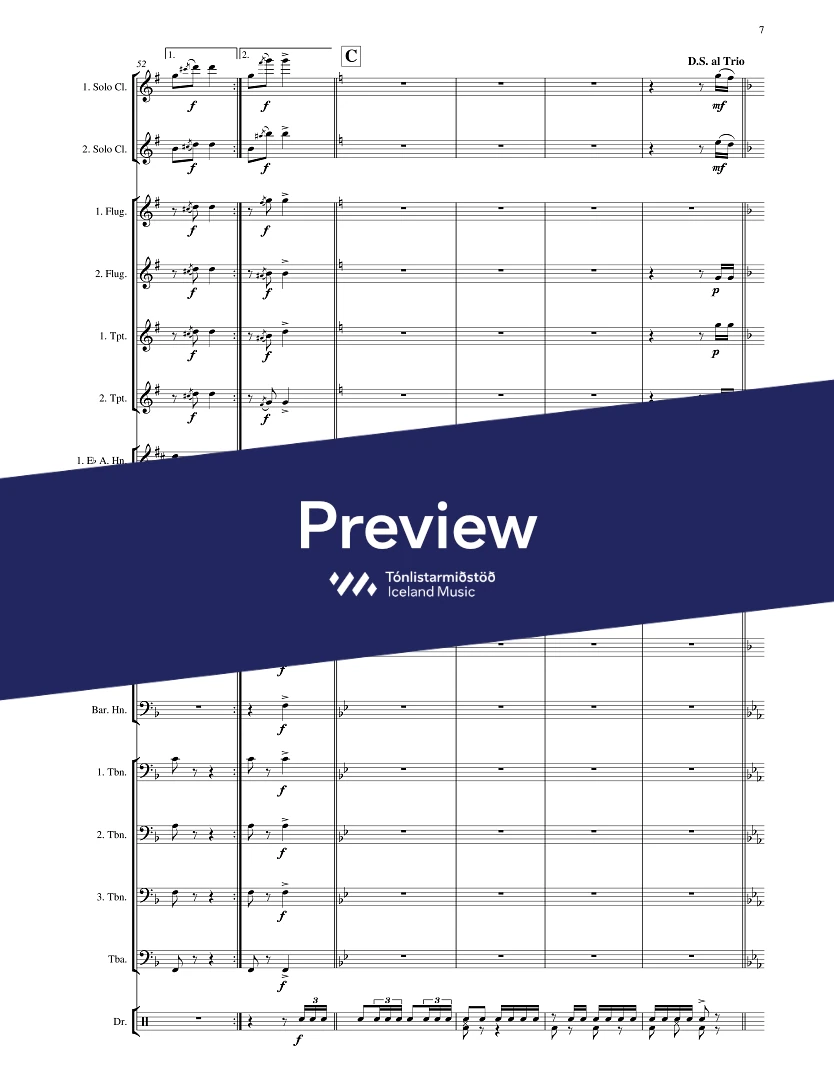 InstrumentationClarinets, French Horn, Baritone Horn, Trumpets, Trombone, Tuba, Percussion