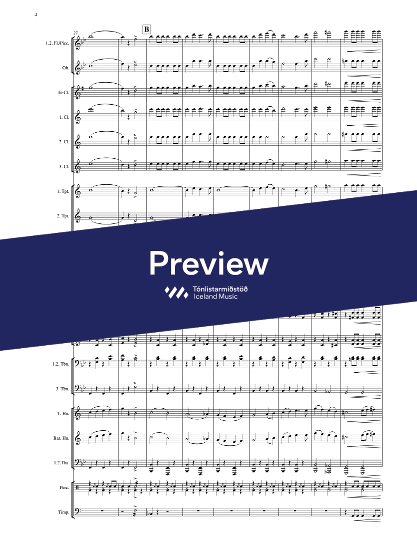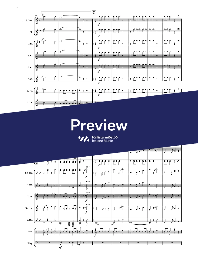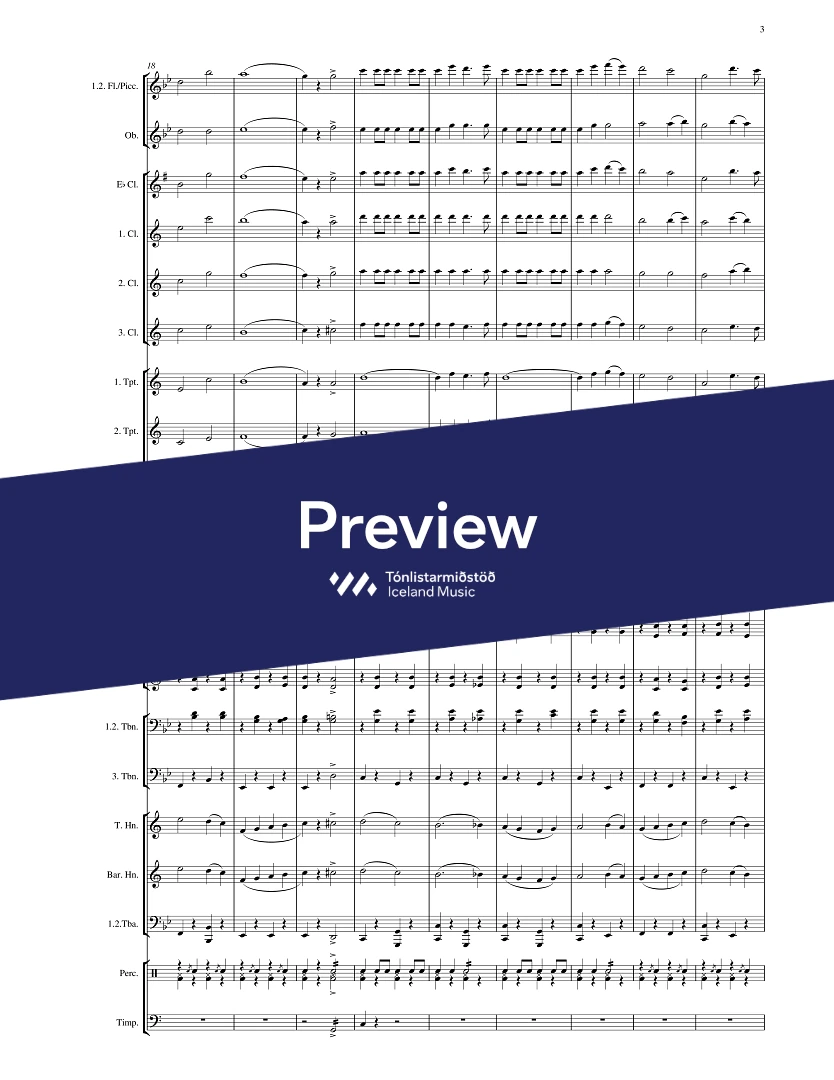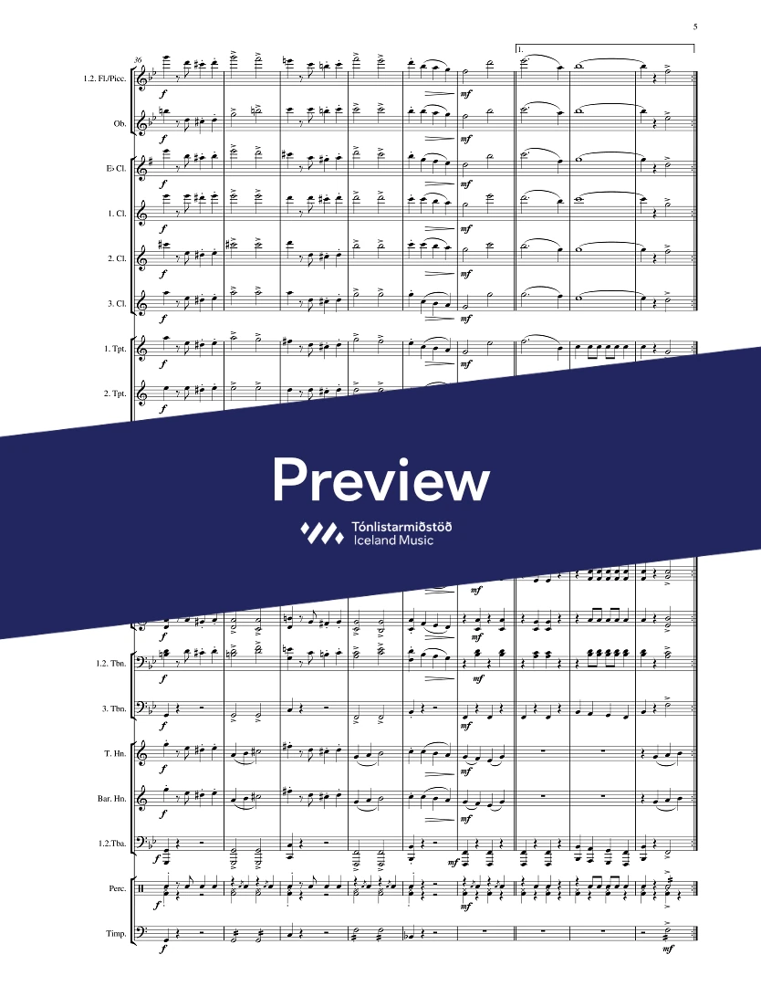 InstrumentationFlute, Oboe, Clarinets, French Horn, Tenor Horn, Baritone Horn, Flugelhorn, Trombone, Tuba, Percussion, Timpani