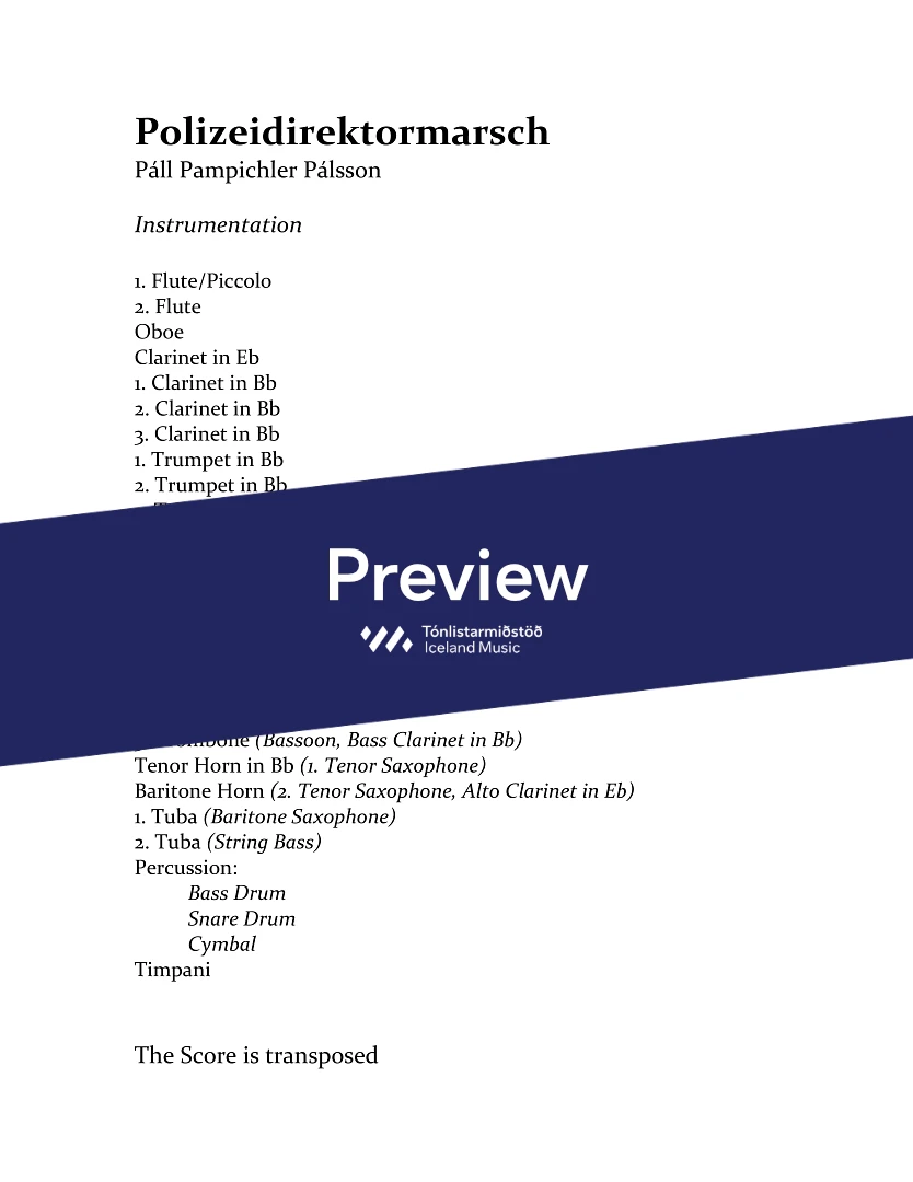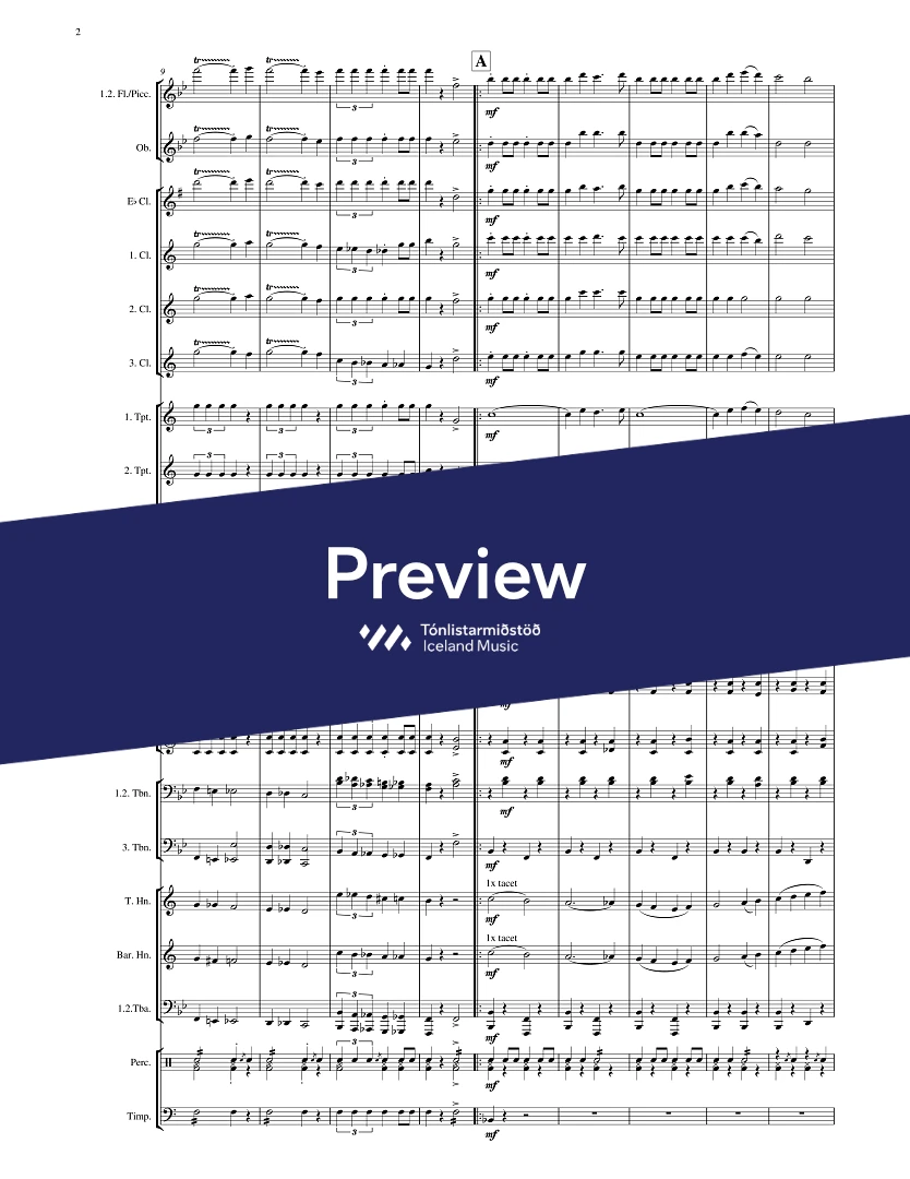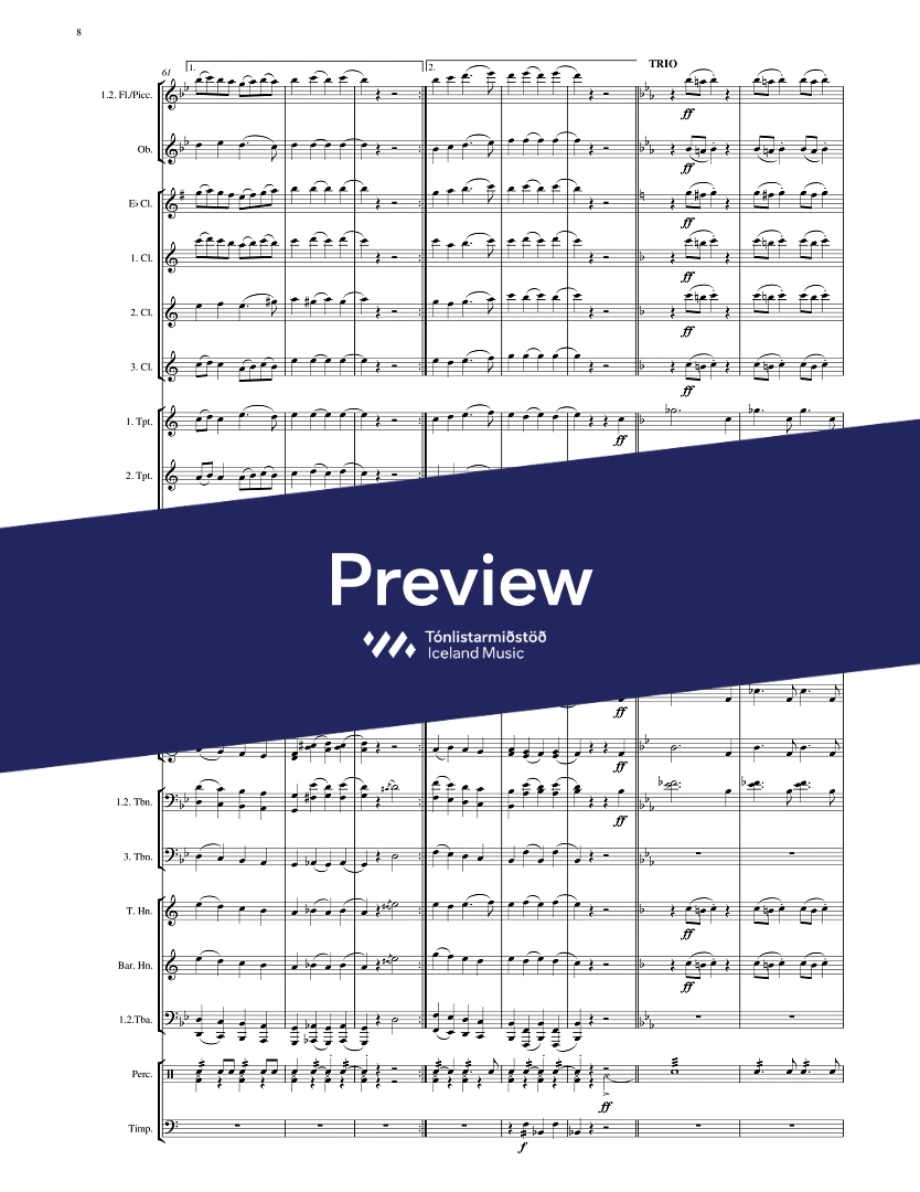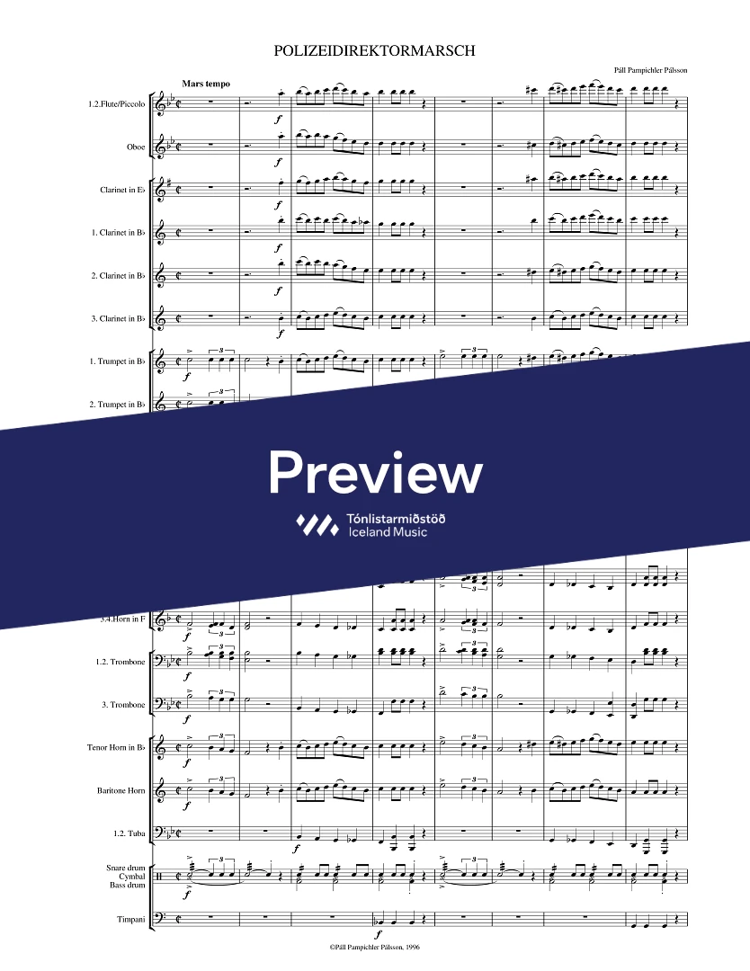 InstrumentationFlute, Oboe, Clarinets, French Horn, Tenor Horn, Baritone Horn, Flugelhorn, Trombone, Tuba, Percussion, Timpani