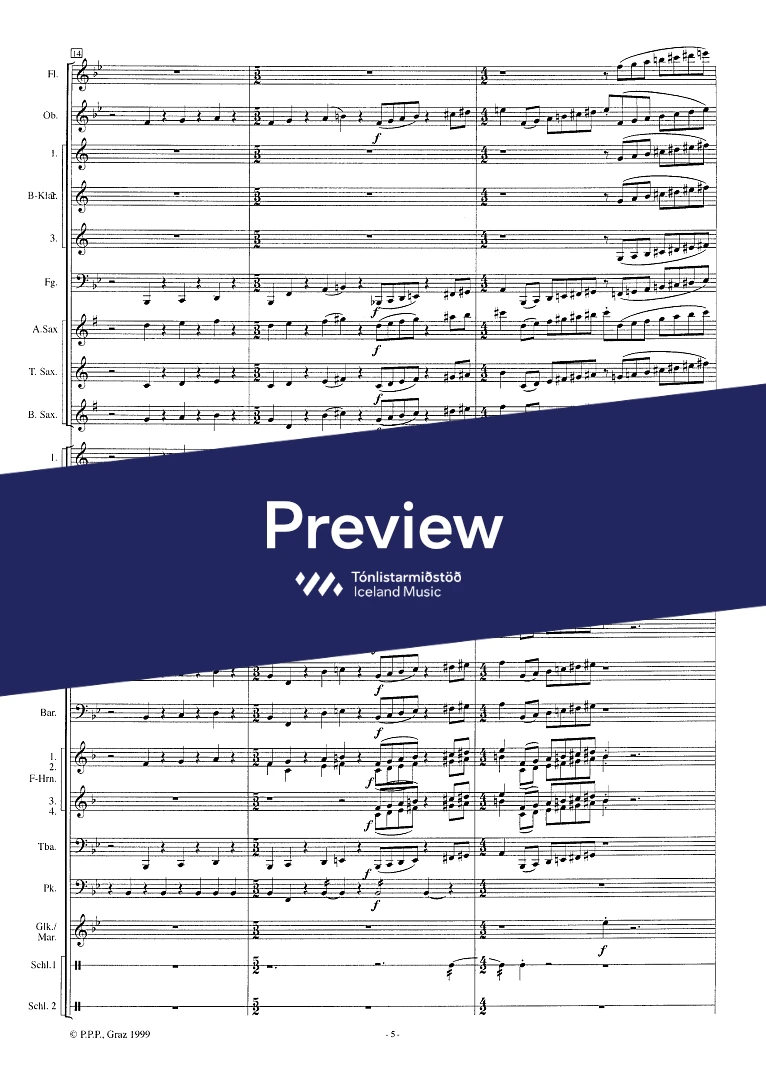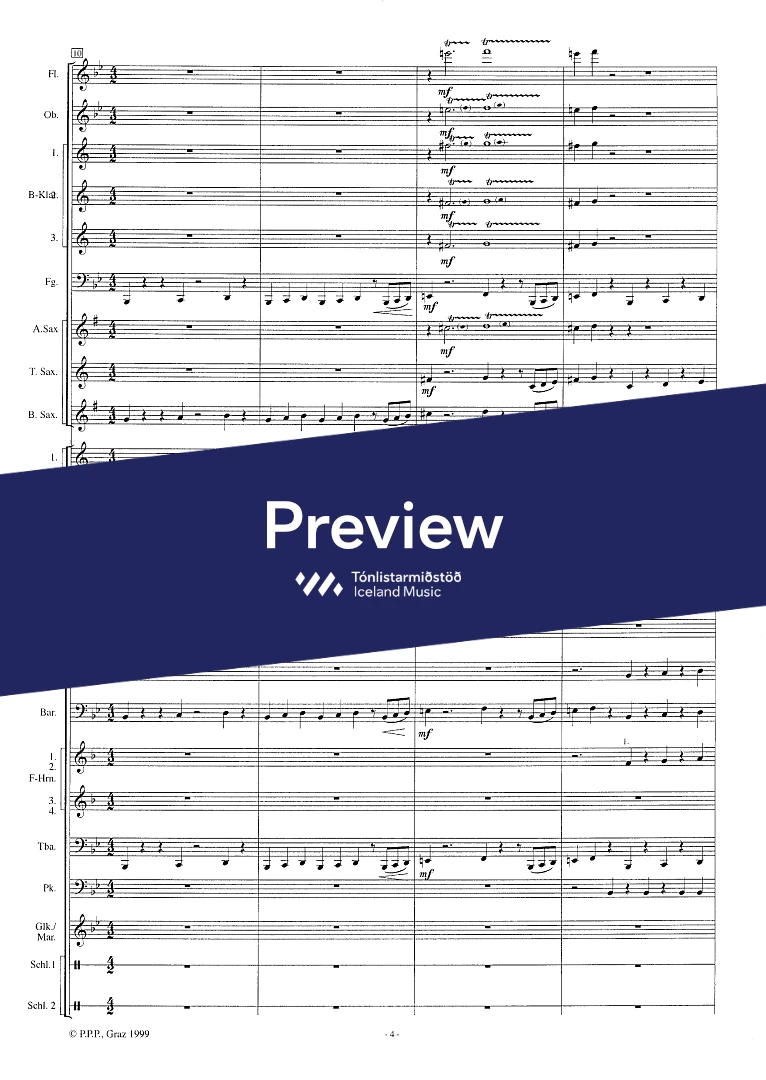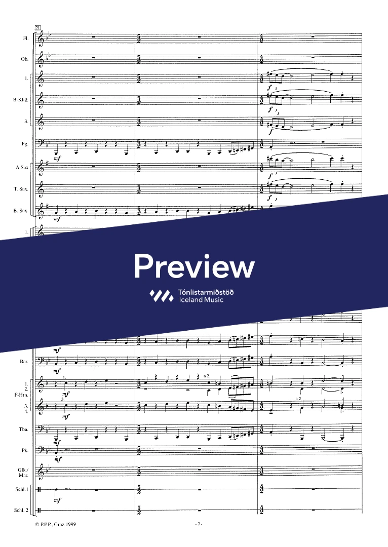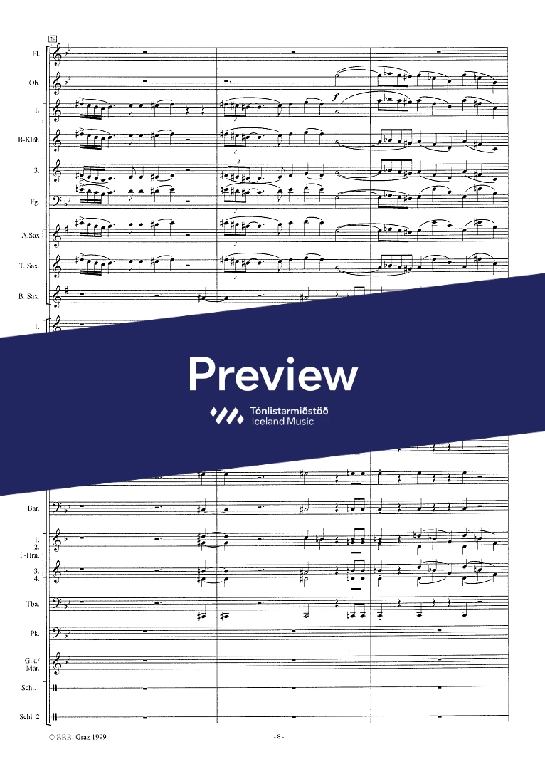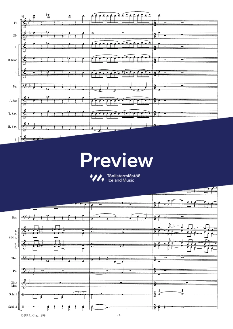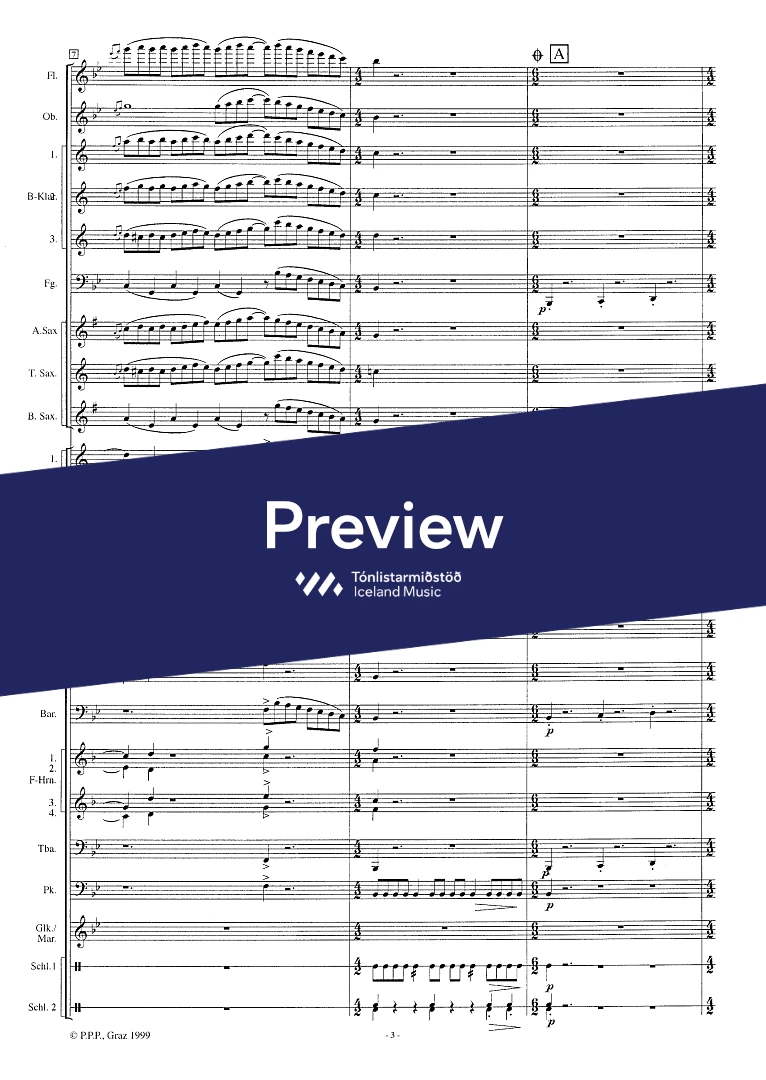 InstrumentationFlute, Oboe, Clarinets, Bassoon, French Horn, Baritone Horn, Trumpets, Trombone, Tuba, Alto Saxophone, Tenor Saxophone, Baritone Saxophone, Percussion, Timpani, Marimba, Glockenspiel