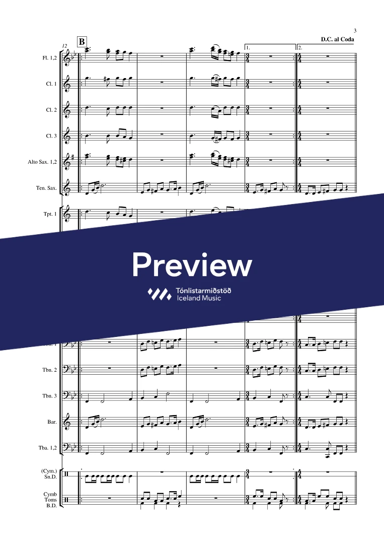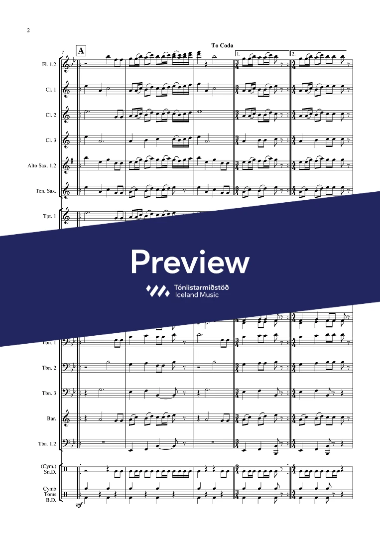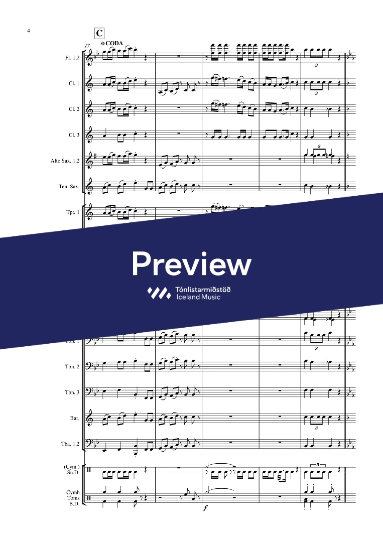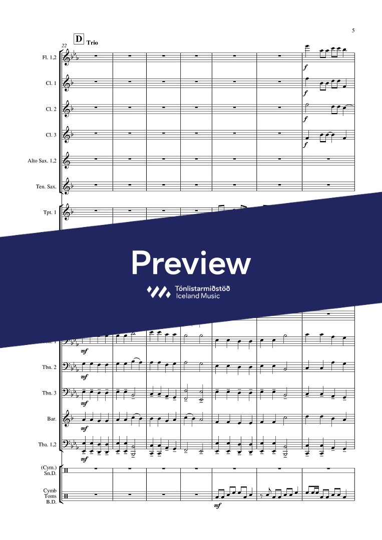 InstrumentationFlute, Clarinets, French Horn, Baritone Horn, Trumpets, Trombone, Tuba, Saxophones, Percussion