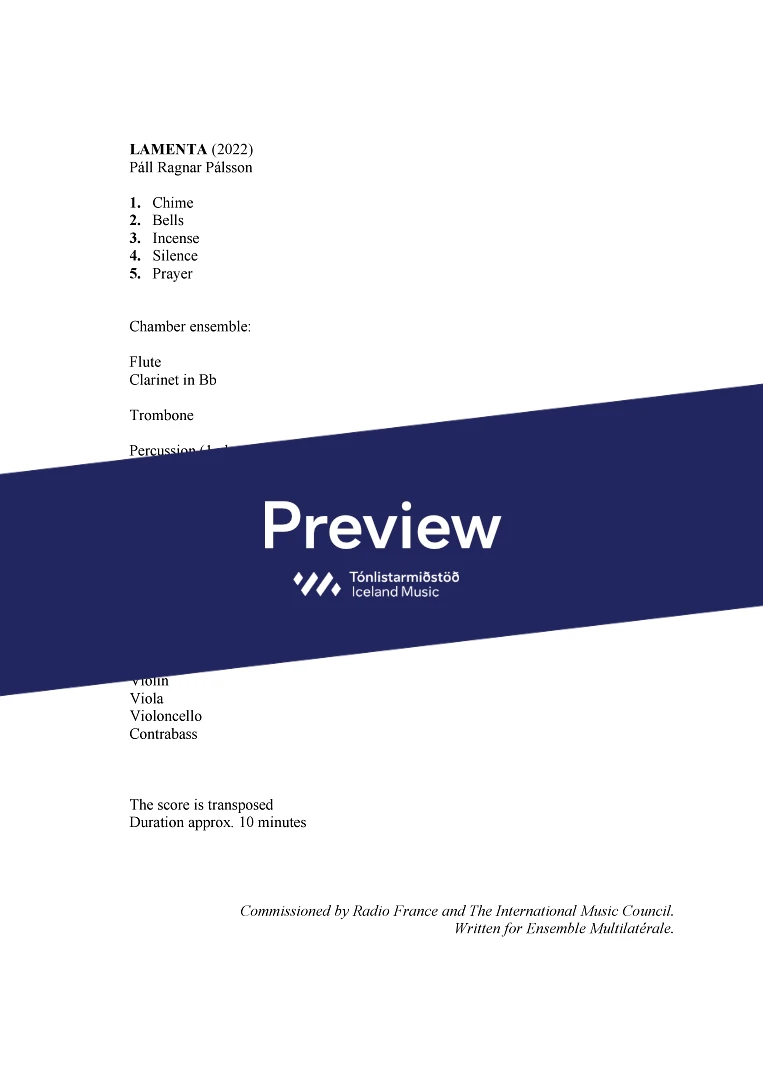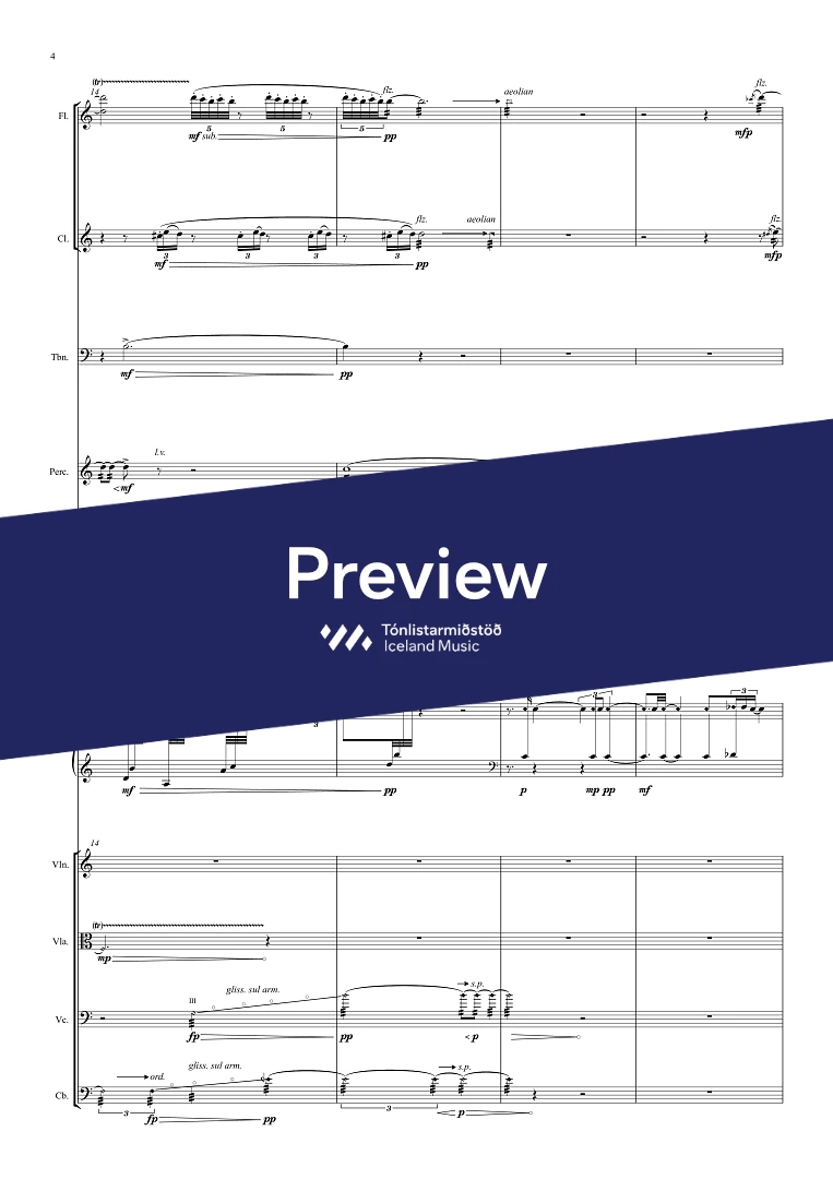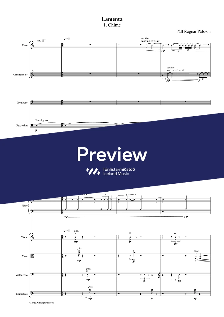 InstrumentationFlute, Clarinet in Bb, Trombone, Percussion, Piano, Harp, Violin, Viola, Cello, Double Bass