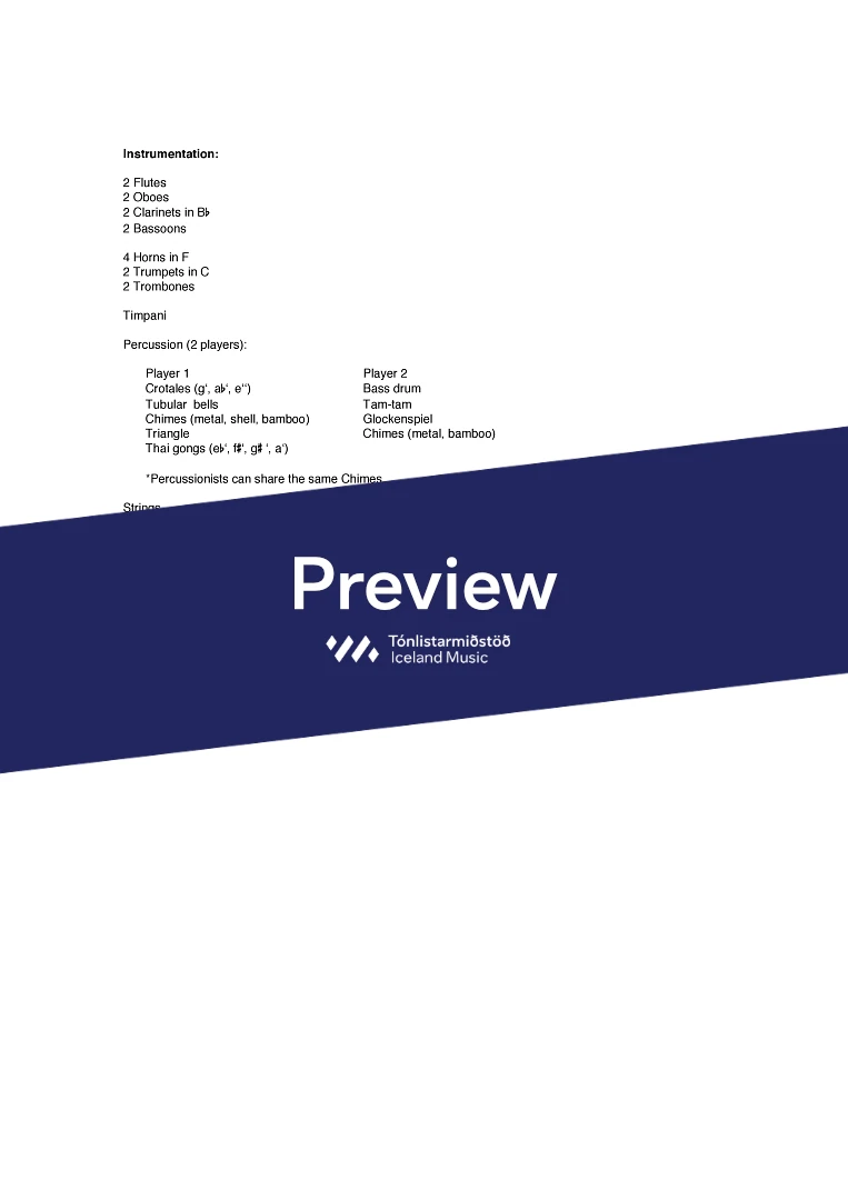 Instrumentation 2.2.2.2. 4.2.2.0. timp. 2 perc. strings