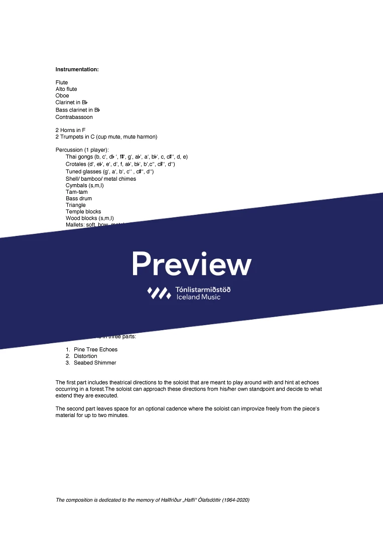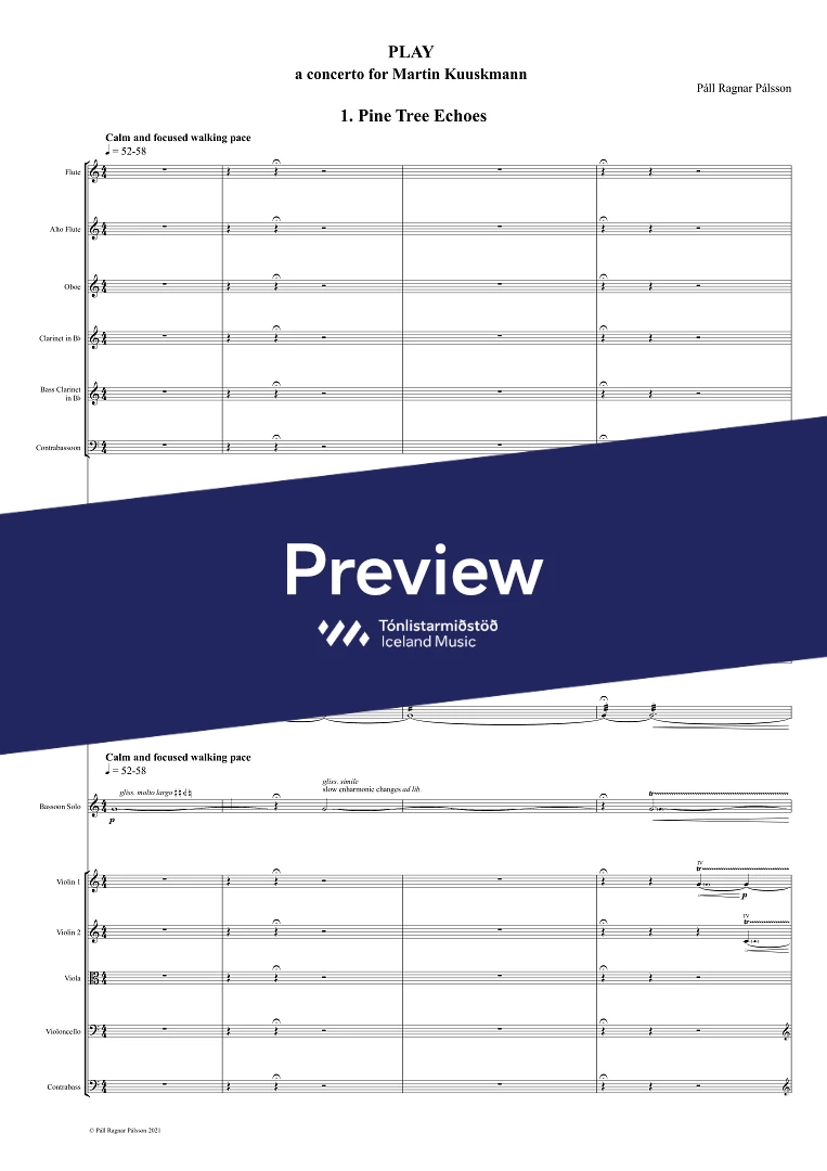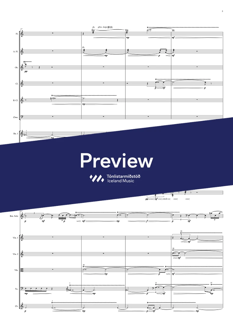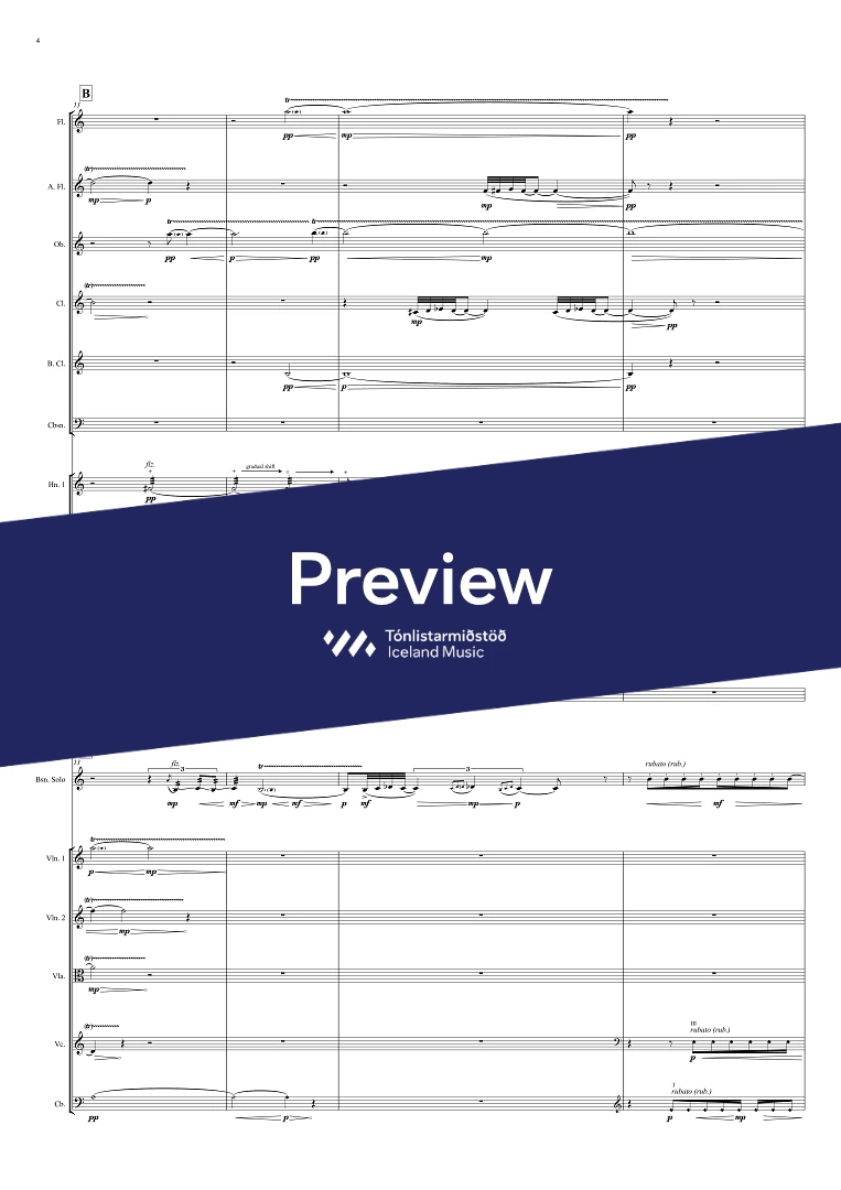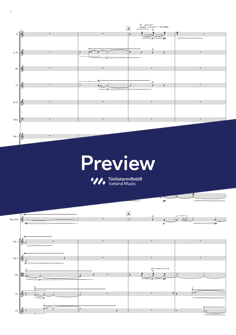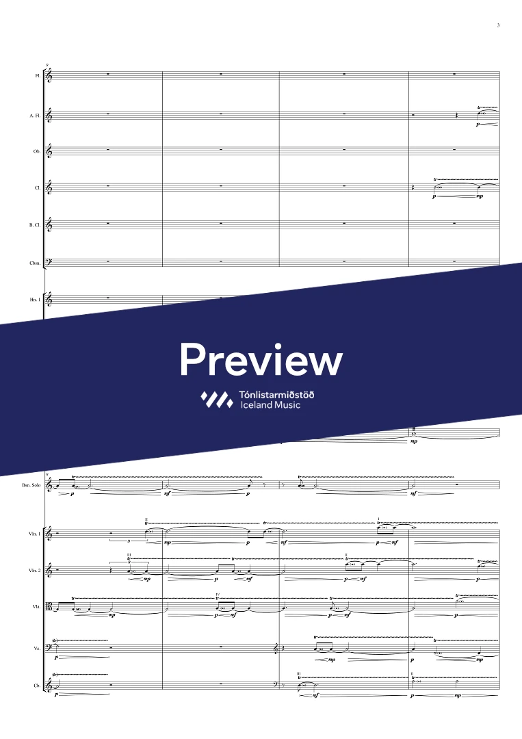 Instrumentation 2(A.fl.).1.2(B.cl.).(Cbsn). - 2.2.0.0. - 1 Perc. - Solo Bsn - Strings