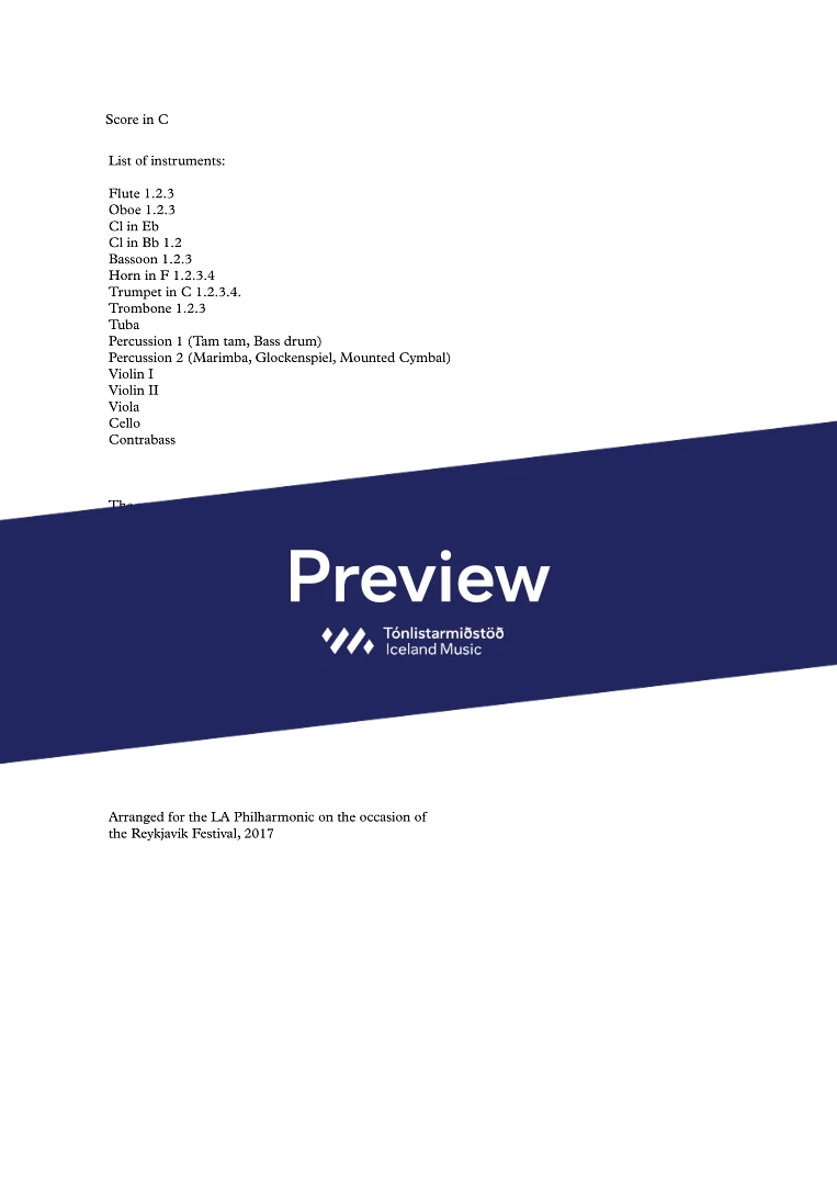 Instrumentation 3,3,3(Eb cl.) 3 - 4,4,3,1 - perc.(2) - str.