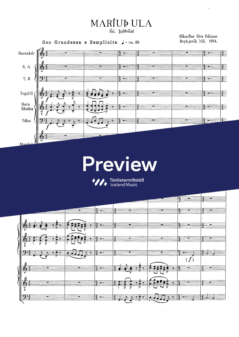 InstrumentationFrench Horn, Trumpets, Trombone, Tuba, Organ, Female choir / Children’s choir