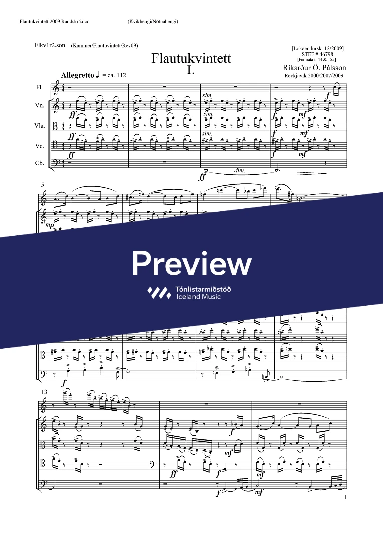 InstrumentationFlute, Piccolo Flute, Alto Flute, Violin, Viola, Cello, Double Bass