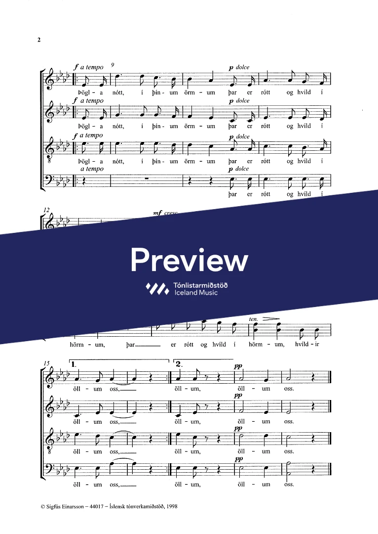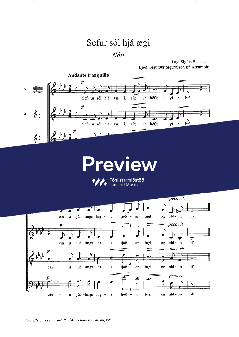Text sampleSefur sól hjá ægi, sígur höfgi yfir brá.