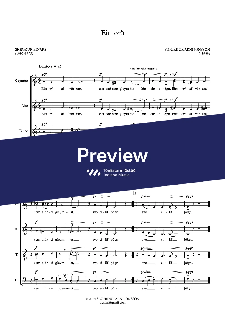 Text sampleEitt orð af vörum, eitt orð sem gleymist hin eina sögn.